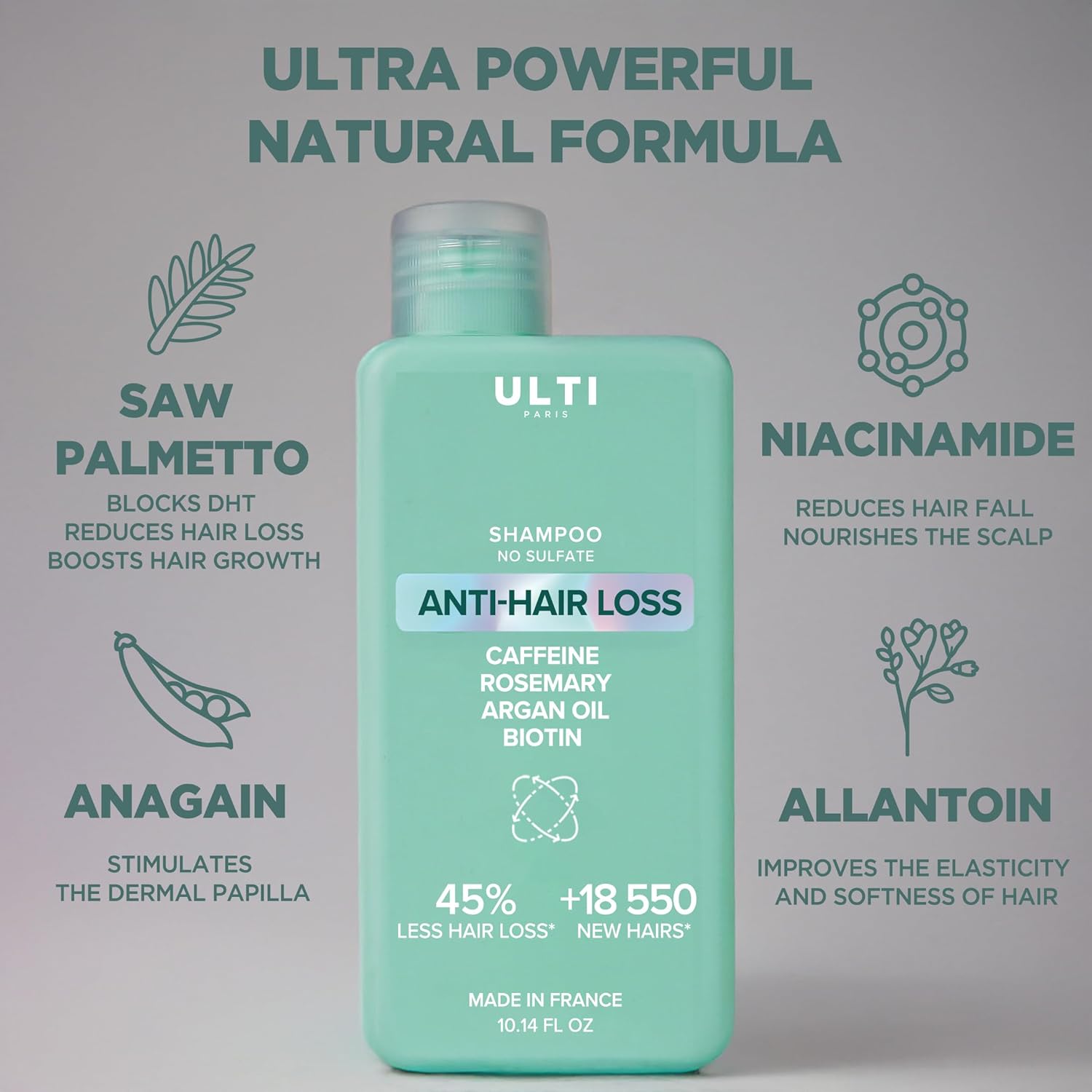 Anti Hair Loss Shampoo, No Sulfate, Caffeine, Rosemary, Saw Palmetto, Argan Oil, Biotin, 45% Hair Loss Reduction, 10.14 FL.OZ.