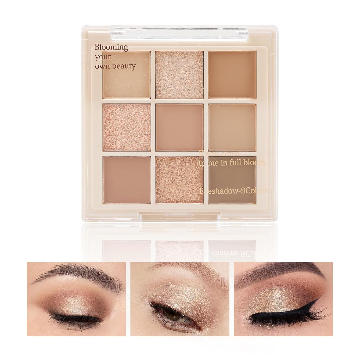 - Neutral Shades: This 9-color eyeshadow palette features a range of warm and cool shades, from soft matte to shiny glitter, with a natural eye magnifying effect that easily creates a versatile look.