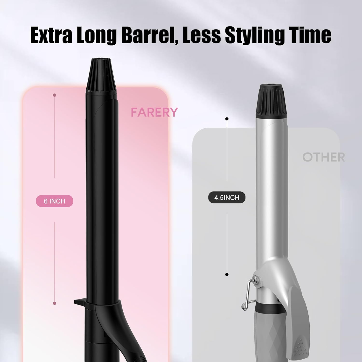 - LONG BARREL, LESS STYLING TIME: The extra long barrel curling iron 1 inch has a 25% longer barrel than normal curling irons. Perfect curlers for long hair. The hair curler has a smooth surface and curls hair without dragging or pulling, also coming with the same length clamp perfectly holds hairs so that makes the styling smoother and faster