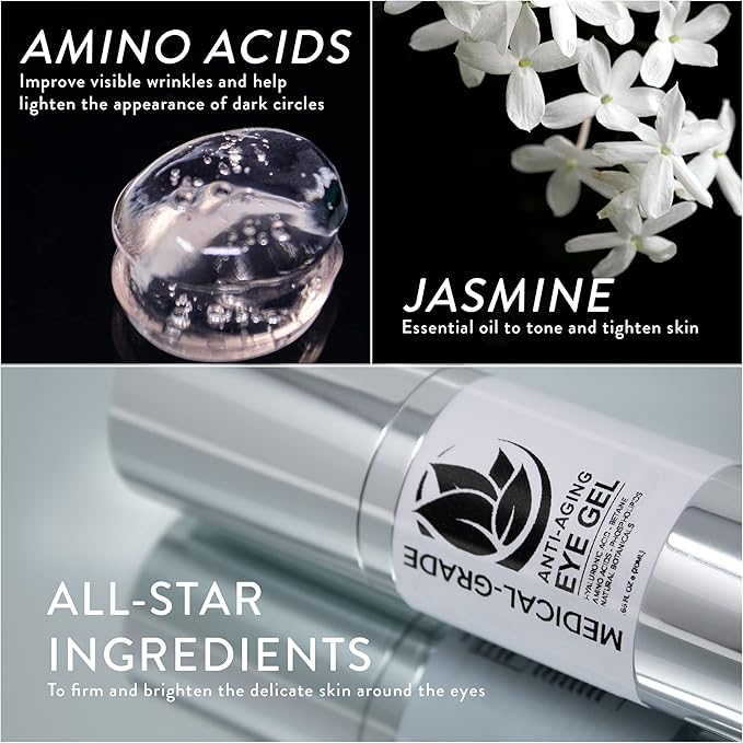 - Replenish and nourish your skin with our hydrating eye gel, infused with the rejuvenating power of hyaluronic acid. This potent ingredient helps to restore moisture and elasticity to your skin, reducing wrinkles and fine lines
