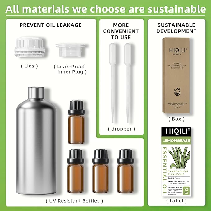 HIQILI 32 Fl Oz Lemongrass Essential Oil, 100% Pure Natural Undiluted Premium Oils