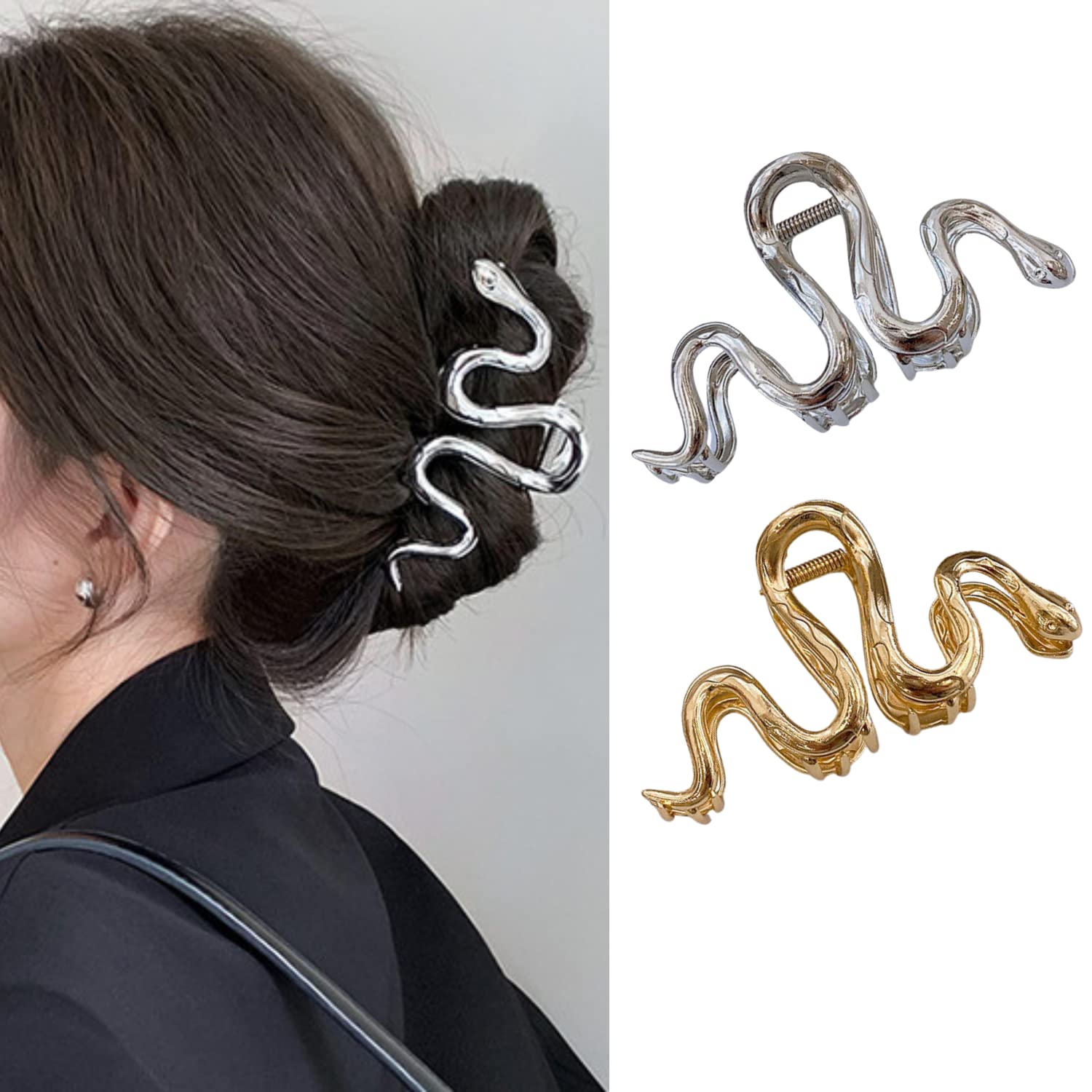 AIUPUOC Large Metal Silver Snake Accessories: Elegant Thick Hair Clips, Barrettes, Banana Hairpins for Women & Girls - 2Pcs