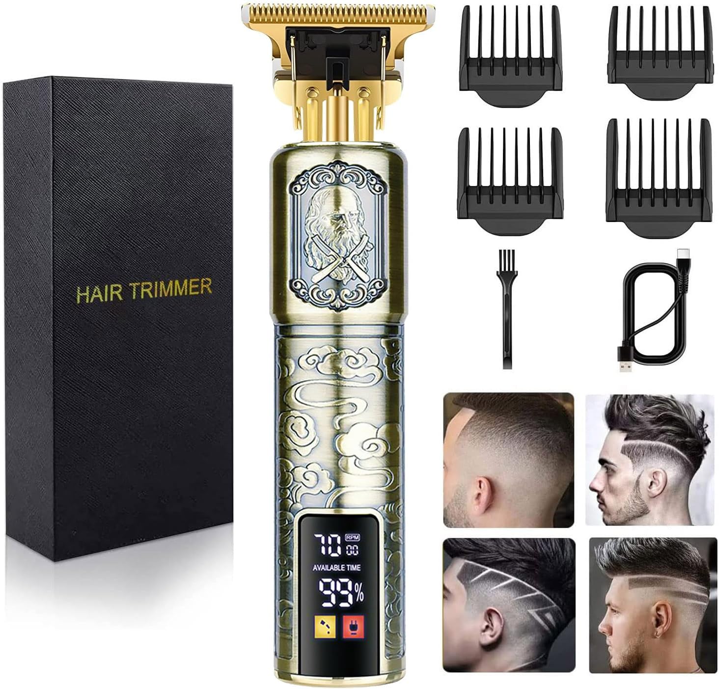 Hair Clippers for Mens Cordless Hair Trimmer T-Blade Trimmer Professional Haircut & Grooming Kit Rechargeable Clippers Hair Trimmer Shaver Cutting Kit with LCD Display (Figure-02)