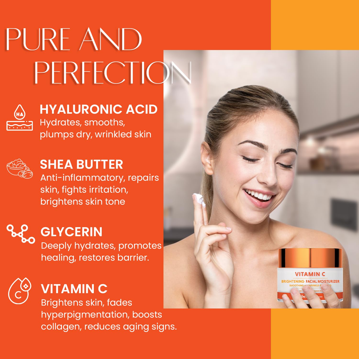 - RADIANT AND REFRESHING: Enjoy a revitalized complexion with our Vitamin C Facial Moisturizer. This potent formula helps repair skin damage and reduce signs of aging, providing a youthful glow. Discover why users rave about its transformative effects.