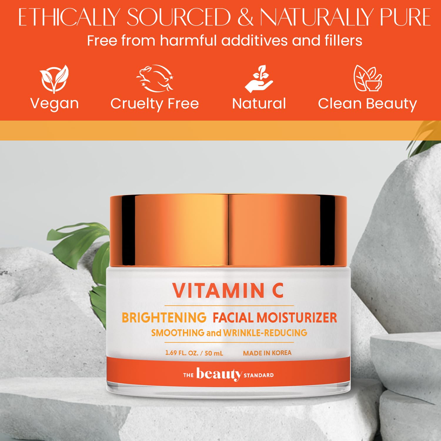 - KOREAN SKIN CARE EXCELLENCE: Elevate your skincare routine with The Beauty Standard Vitamin C Facial Moisturizer. Infused with Vitamin C, it evens out dark spots, and boosts collagen production. Experience the premium quality of Korean skincare.