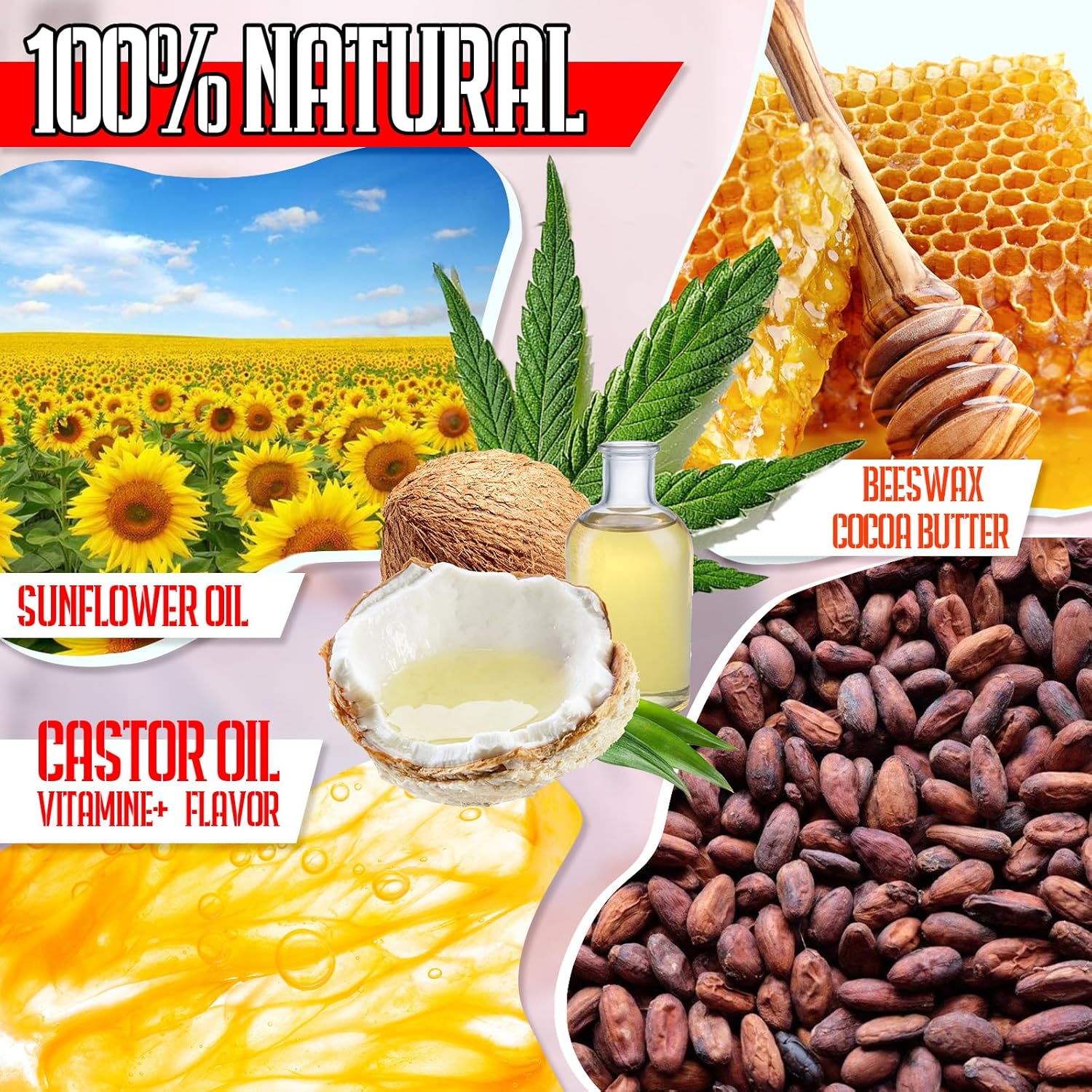 - Rich in coconut oil with vitamin E. - Repairing and renewing damaged lip tissue, shielding lips from the damaging effects of wind, sun, and cold weather