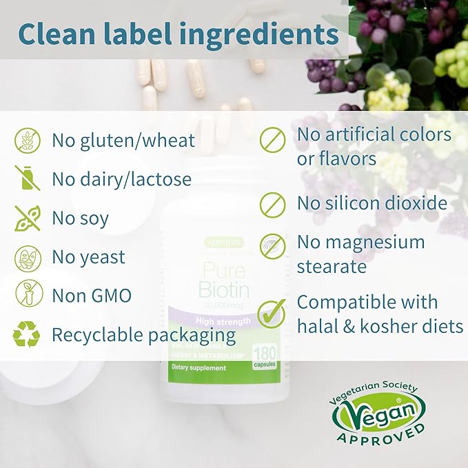 - MAXIMUM POTENCY & EFFECTIVE DOSE - Pure Biotin is expertly formulated to raise biotin levels with an effective daily dose of 10,000 mcg D-Biotin (vitamin B7)*