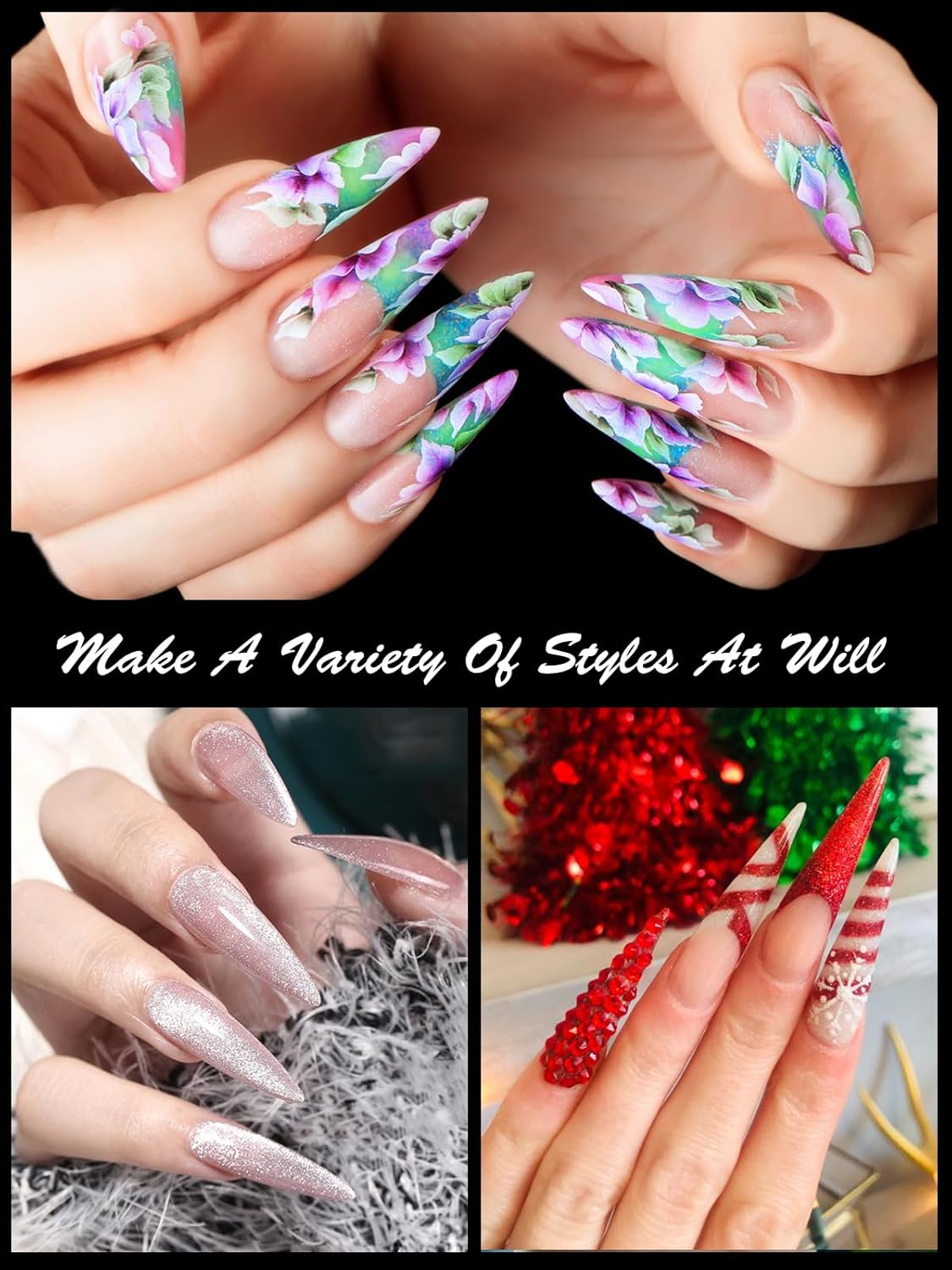 - 【Nail Form Mold with 12 Sizes】120pcs stiletto clear nail forms offers 12 different nail sizes , and each size of long nail tips is separated by a small grid, a total of 12 grids, so they're easy and convenient to choose the suitable size to meet your nail's need.