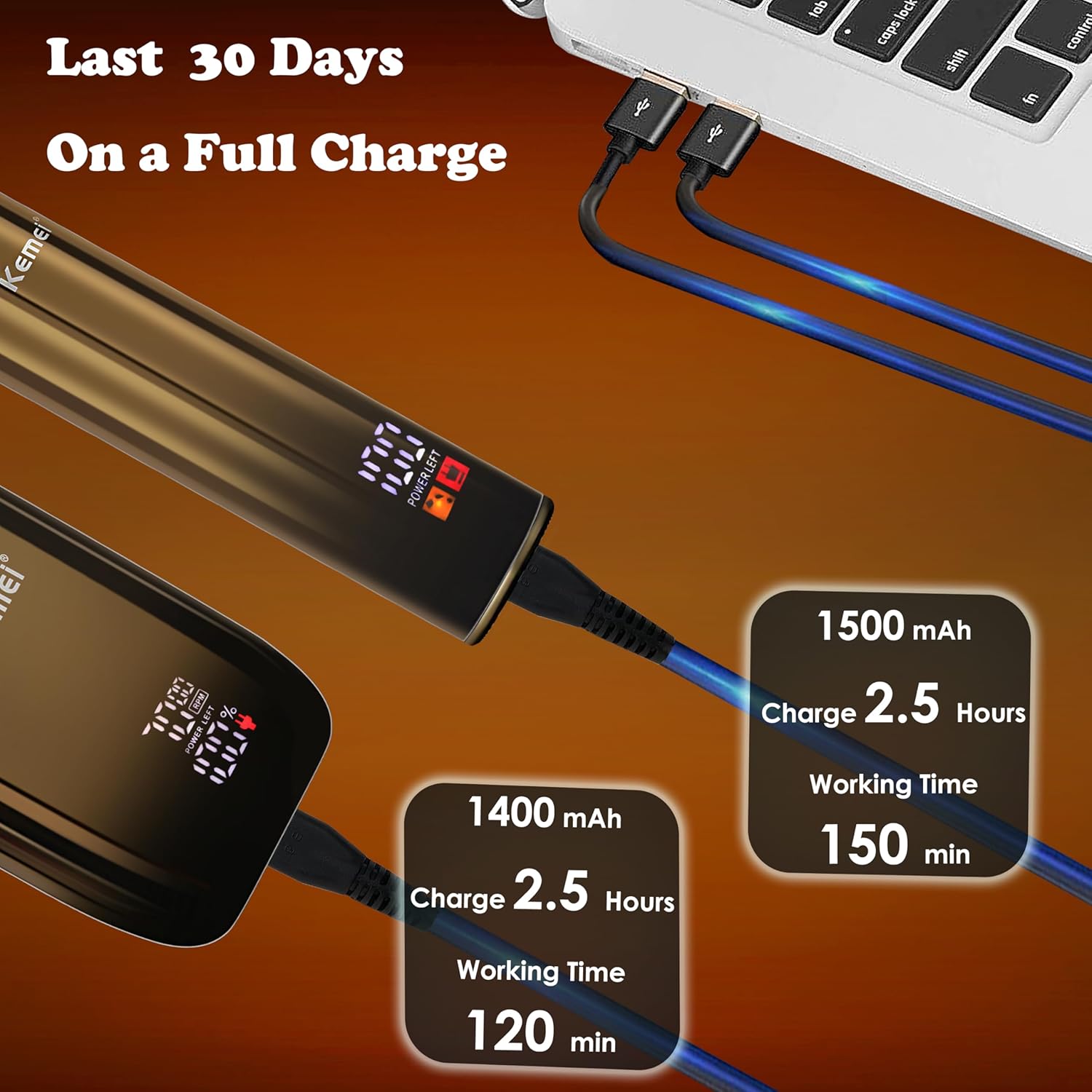 - LED Displays: The shaver and hair clipper are powerful, there are smart LED displays,one-button switch, battery percentage display