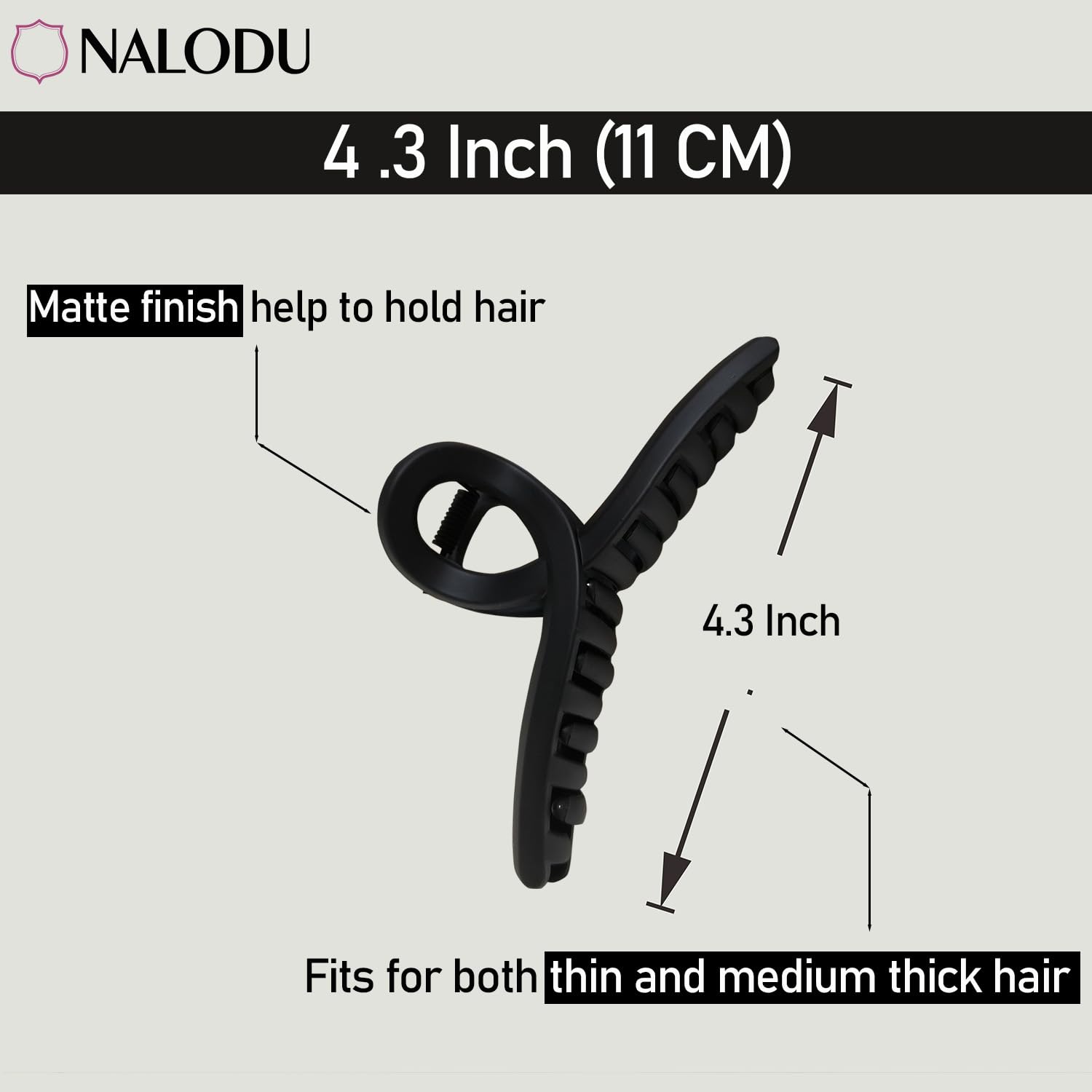 4.3 Inch Hair Claw Clips Large 4 Inch No Slip Big Black Matte Jaw Clip for Thin Fine and Medium Thick Hair Women, 4 Pack