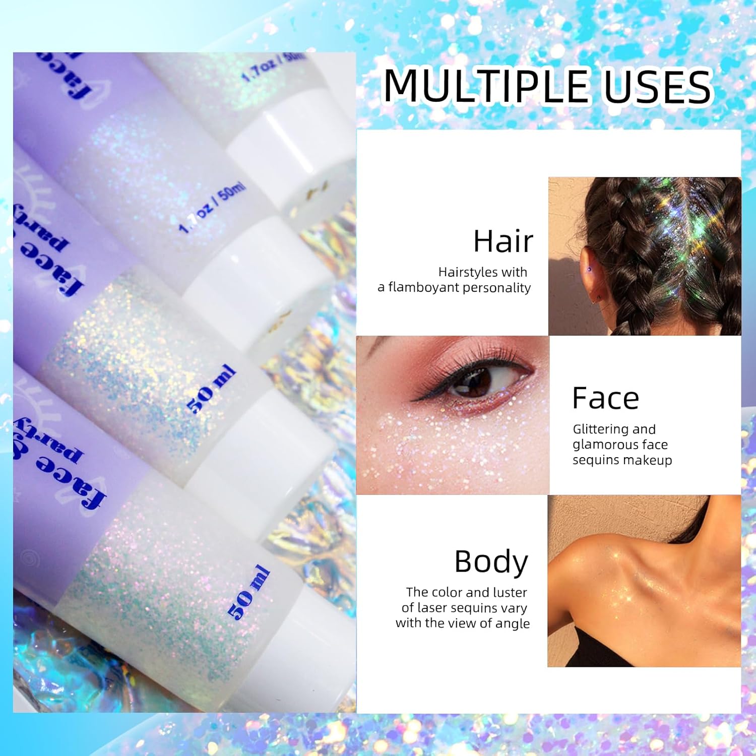 - 【Ideal Choice】Give the body glitter gel to someone close to you who loves glittery makeup! Holographic colored glitter is perfect for creating bold and creative makeup looks.