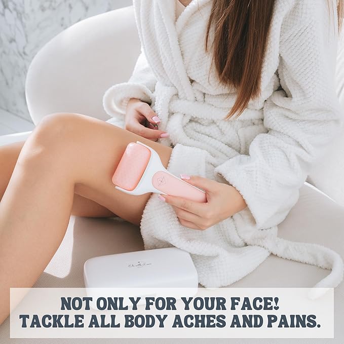 - INSTANT RELIEF AND RECOVERY - Experience immediate relief from redness, swelling, and irritation with our premium ice roller for your face and body. Perfect for calming sensitive skin and speeding up recovery post-skin treatments, it's an essential tool to alleviate discomfort and to refresh and lift your skin. We’ve included a replacement roller head for extended cooling time, so no need to worry about it warming up during your session.