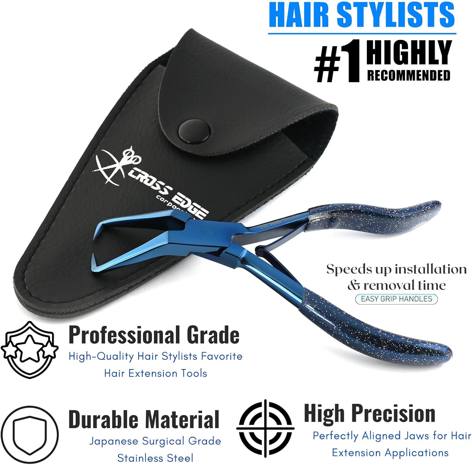 - ๐ Wide Use: Professional plier for hair extensions applications is very suitable for daily hairdressing, parties, bar revelry, and holiday dressing. Packing Case: Our hair extension pliers come with a Black PU Leather carry pouch to protect them from scratches when not in use.
