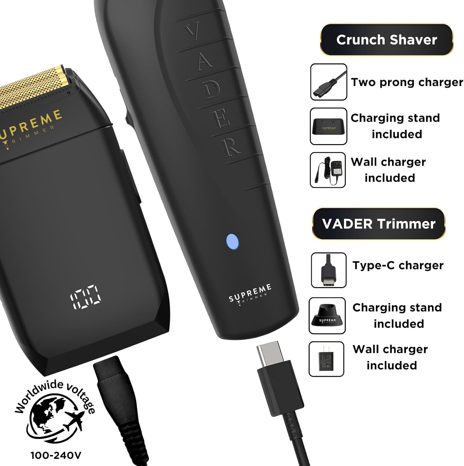 Supreme Trimmer Vader Trimmer & Crunch Foil Shaver Barber Haircutting Kit | Professional DLC T-Blade Beard Trimmer ST3778 & STF602 Waterproof IPX6 Shaver Set | (Black)
