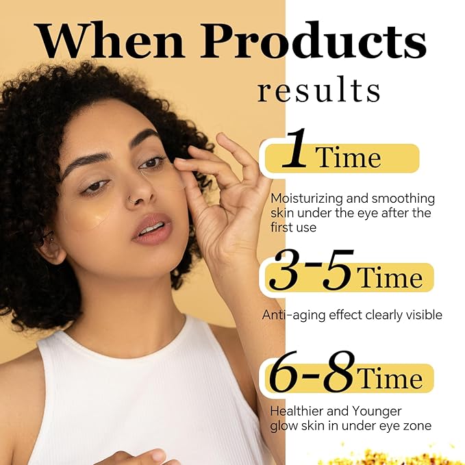 - 24K Gold Effect: gold eye mask is one of the most popular eye masks on the market, not just only like this eye mask's gold color, it’s most important this gold under eye patches have a huge improvement for problematic skin. Especially when it comes to anti-aging.