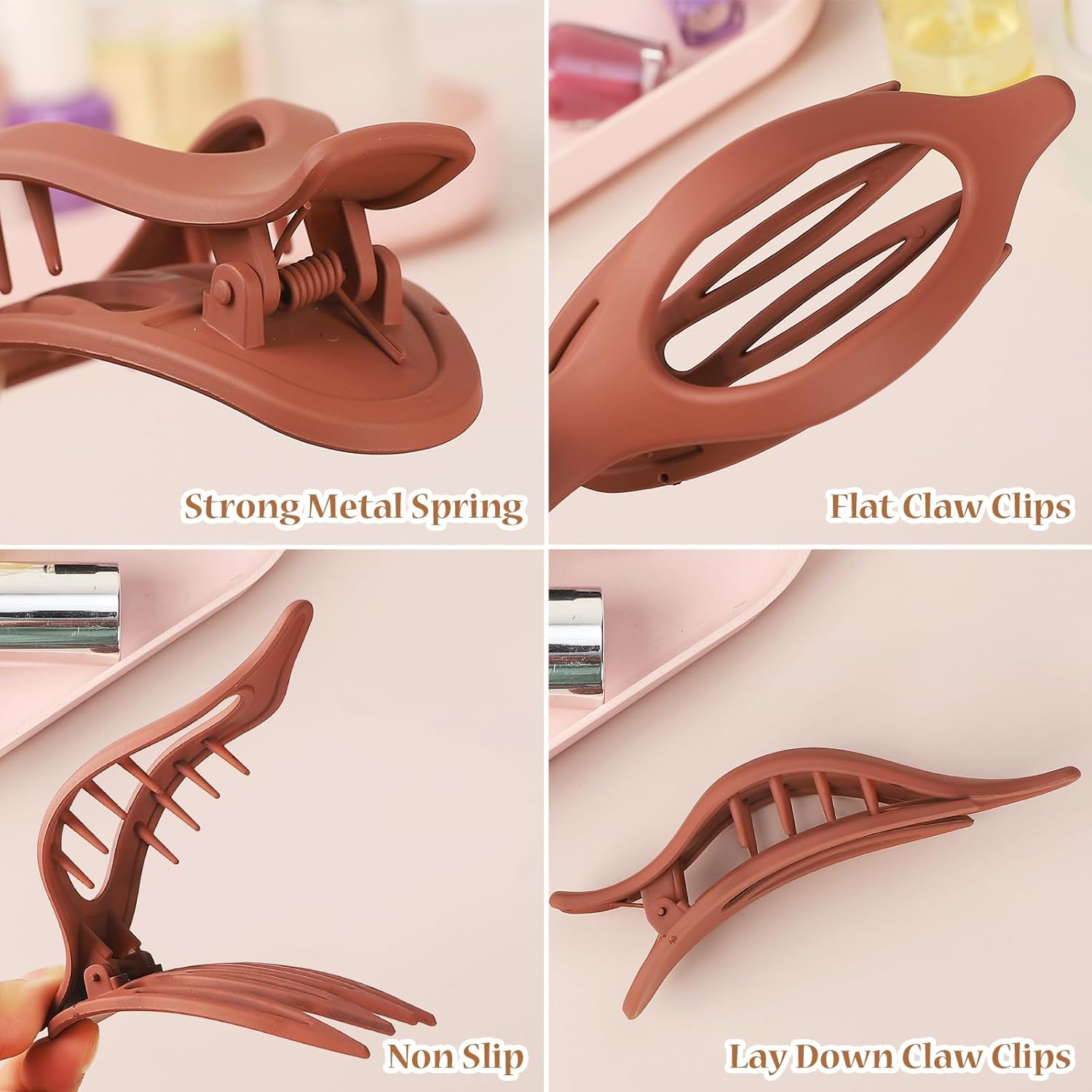 - Flat Lay Down Claw Clips: Flat Hair Clips. Smooth Curve Design. Not Hurt Your Head When Driving Car or Laying Down.