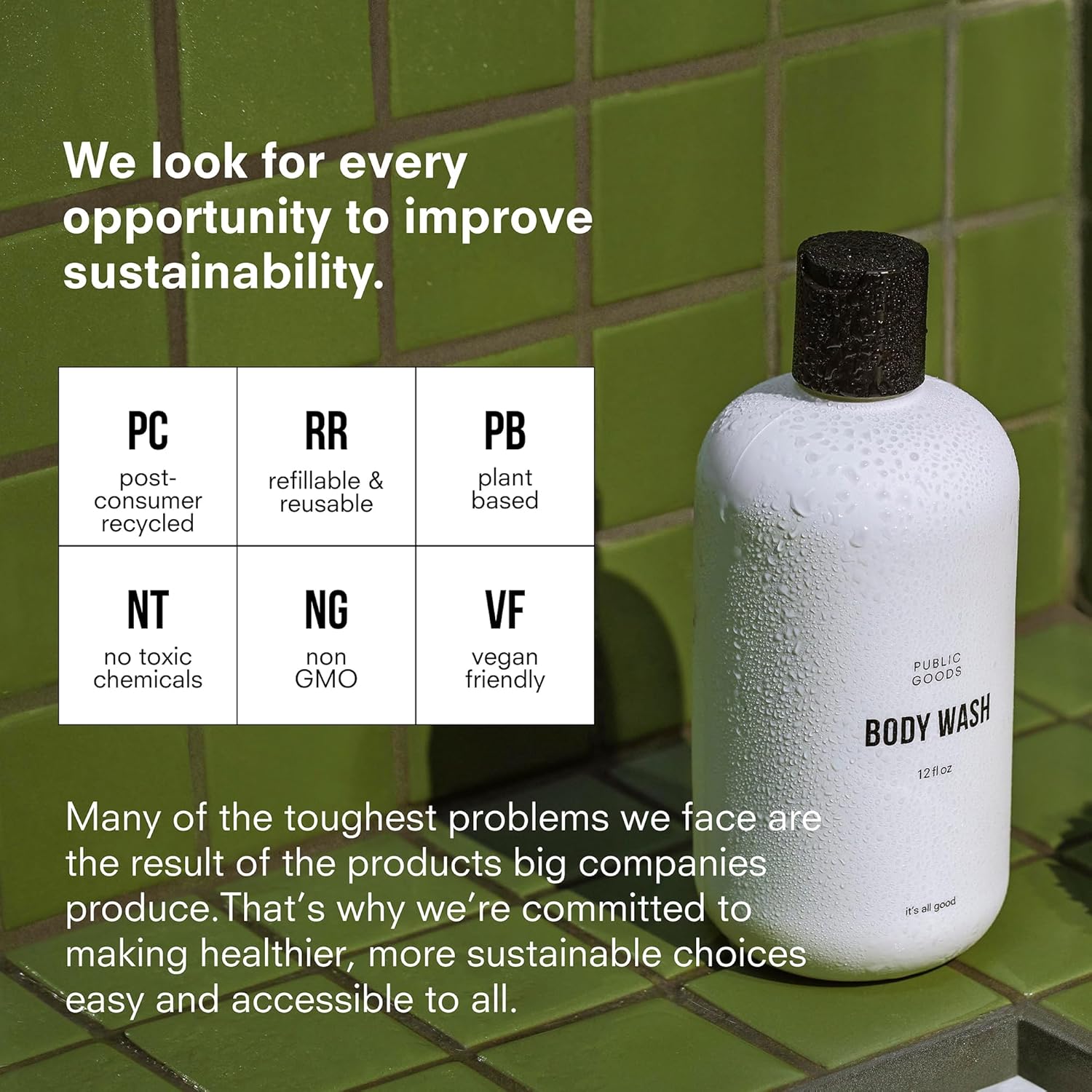 Public Goods Body Wash for Men and Women | Natural Soap for Bath & Shower | Body Scrub Made with Organic Essential Oils | Sulfate & Paraben Free | Vegan Friendly | 12 Fl Oz Bottle