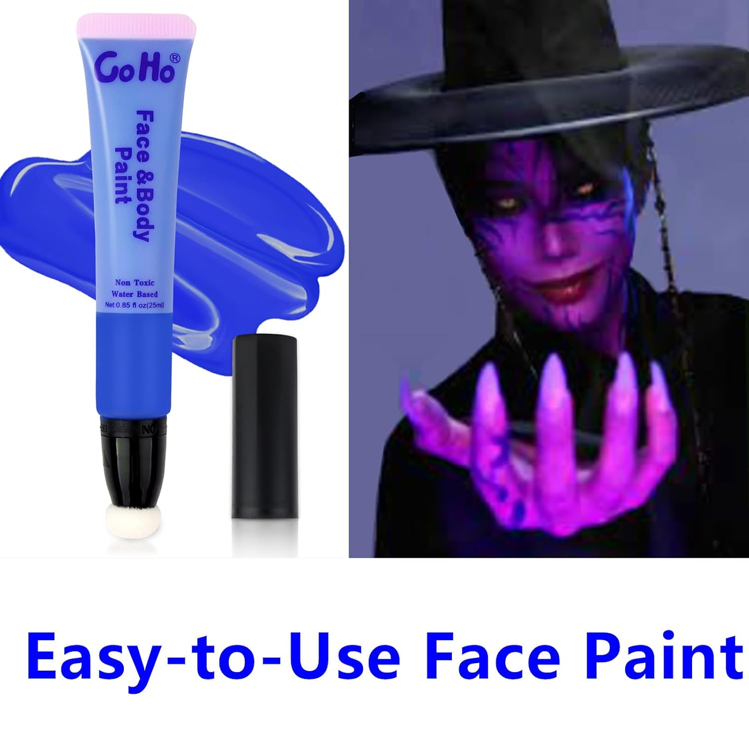 Go Ho Royal Blue Face Paint Washable,Water Based Cream Blue Face Body Paint,Halloween Cosplay SFX Smurf Mystique Avatar Clown Makeup,Highly Pigmented,Smooth and Safe for Skin