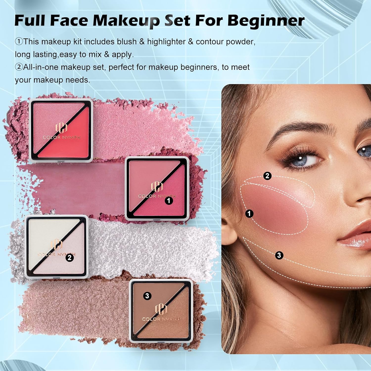- 【Long-Lasting & Gentle Formula Makeup】:Color Nymph aims to minimize the risk of allergic reactions. All the Makeup Product are made with cruelty-free and healthy formula which has test suitable for sensitive skin, ensuring they are safe to use on your face, lips, and eyes.