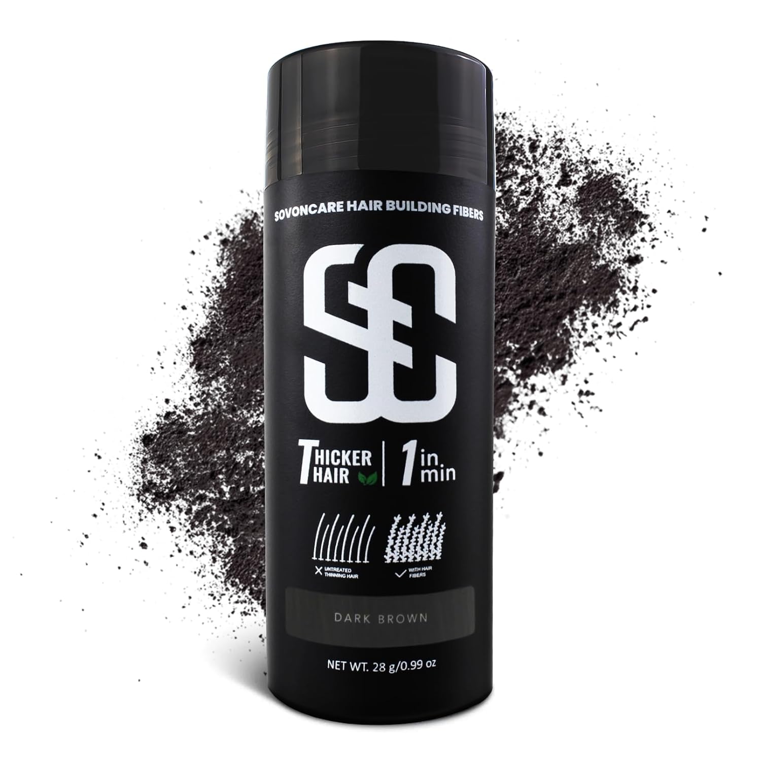 SOVONCARE Hair Fibers for Thinning Hair Dark Brown, Hair Building Fibers for Bald Spots Undetectable & Natural, Conceals Hair Loss, Fill In Fine Hair Powder Hair Thicker Instantly for Women & Men 28g