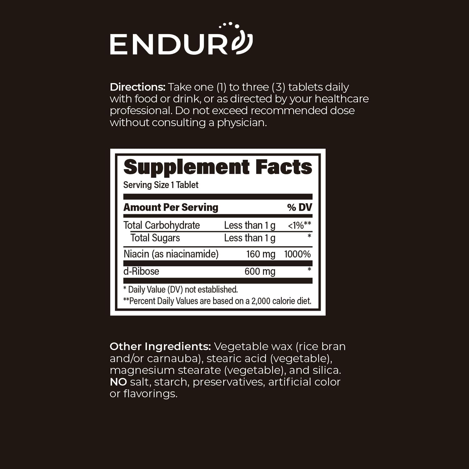 Endur RIAGEV-SR, Sustained Release NAD+ Booster for Helping You Feel & Perform Your Best, Ribose & Niacinamide, Vegan, Gluten Free (90 Tablets)