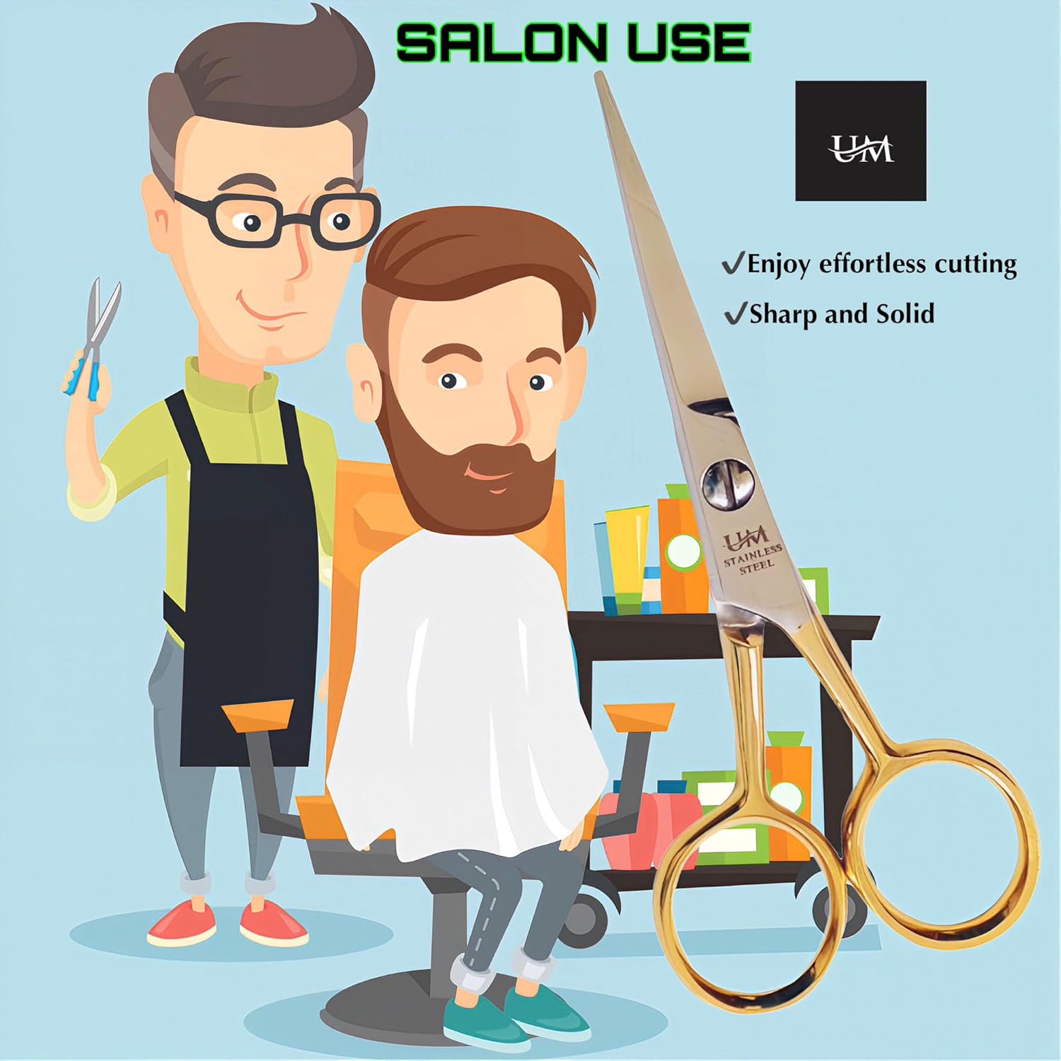 UM Supplies Hair Scissors | Premium Shears For Hair Cutting | Professional Barber Scissors with smooth Razor I Haircut Scissors For SalonIWomen Mens|kidsIPets (Silver) (SILVER-GOLD 4.5)