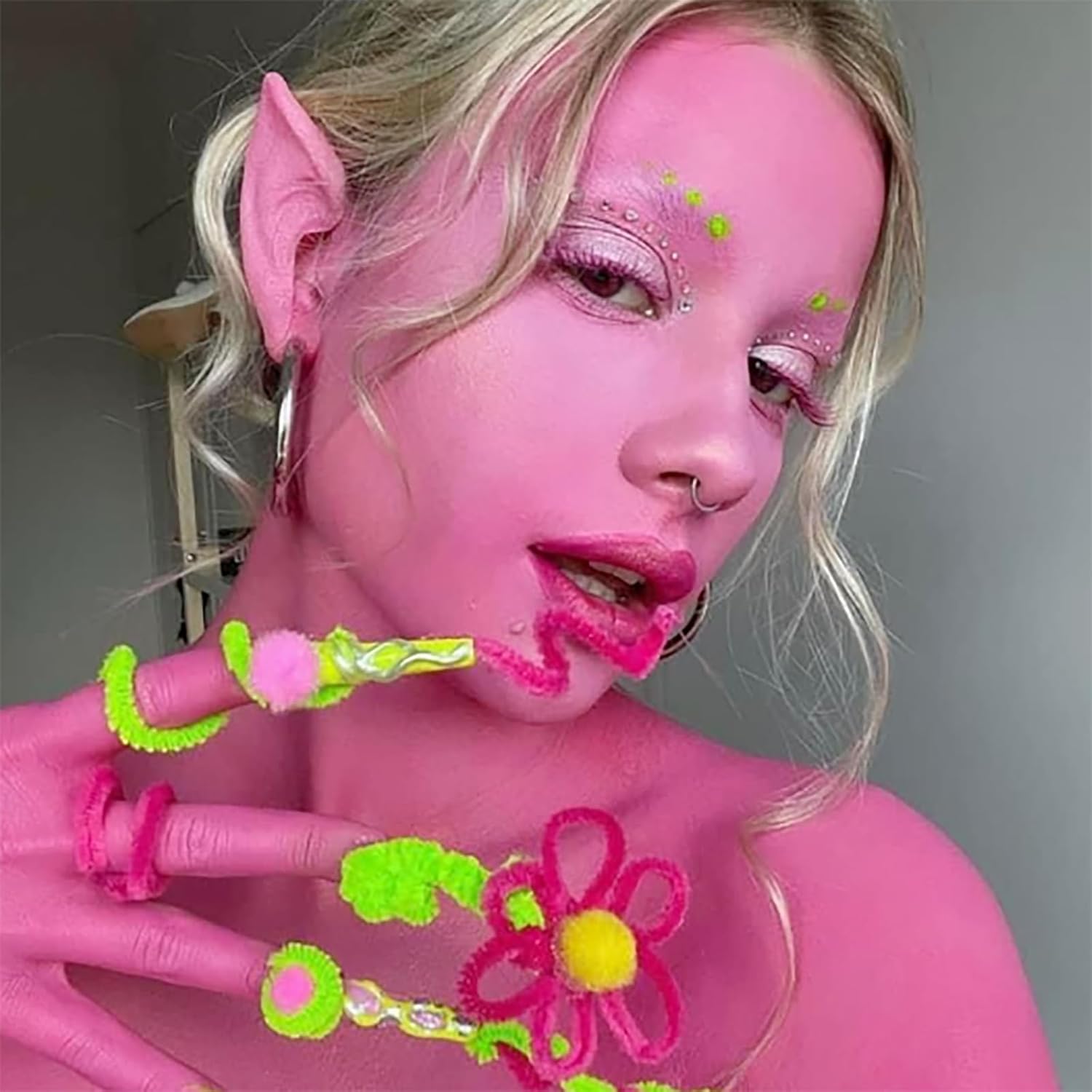 Mysense Hot Pink Face Body Hair Paint Stick,Easter Bunny Face Paint,Water Based Temporary Hair Color,Cream Body Painting for Adults and Children Halloween Cosplay SFX Makeup,0.5oz