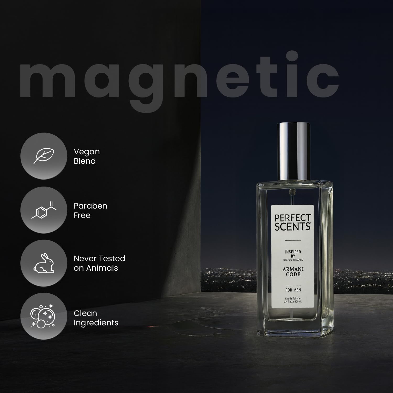 Perfect Scents Fragrances, Inspired by Giorgio Armani’s Armani Code, Men’s Eau de Toilette, CLEAN, Vegan, Paraben-Free, Phthalate-Free, Never Tested on Animals, 3.4 Fluid Ounces