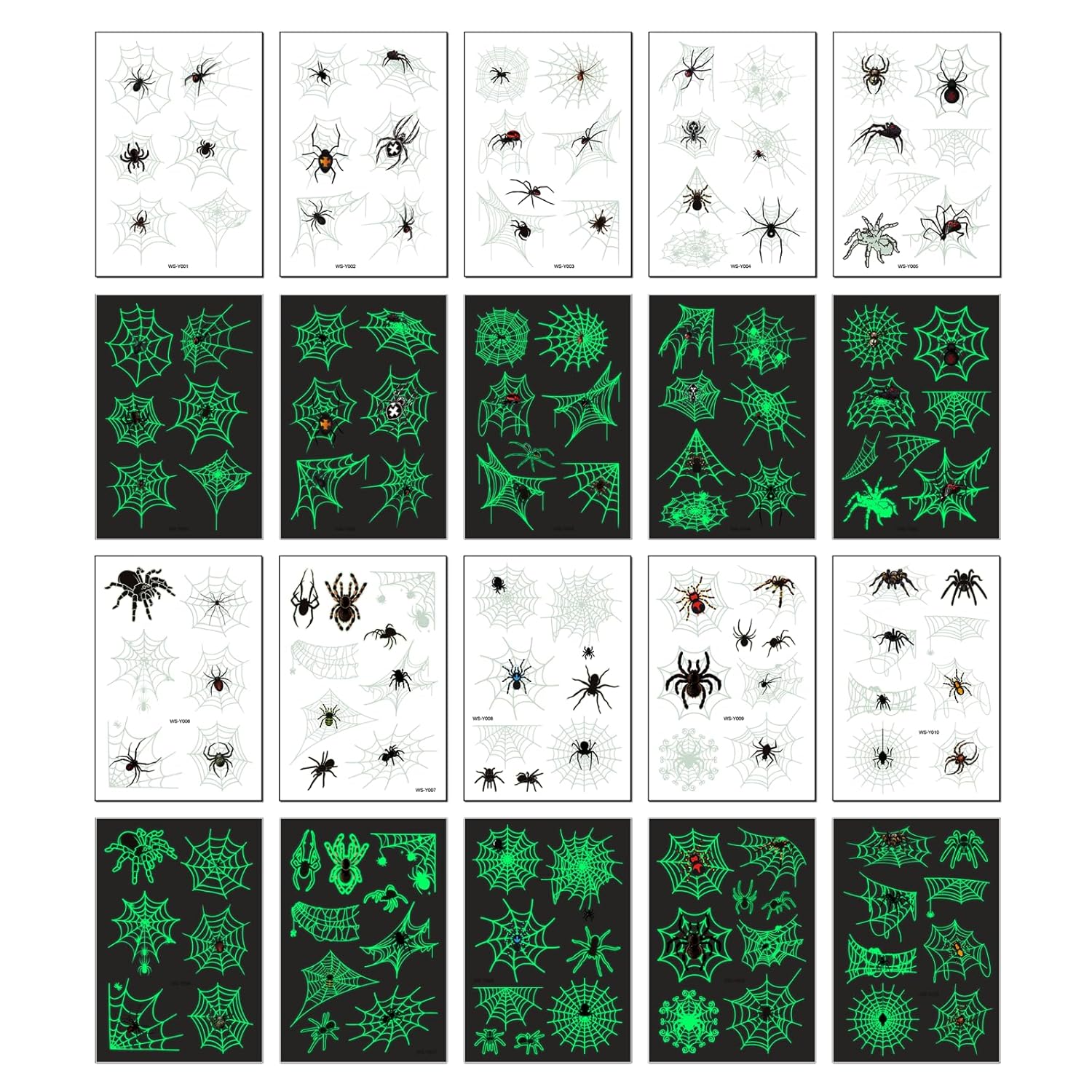 - Glow Halloween Party Supplies for Kids - 4.3 * 2.95 inch 10 Sheets Halloween Luminous Spider Web Temporary Tattoos.