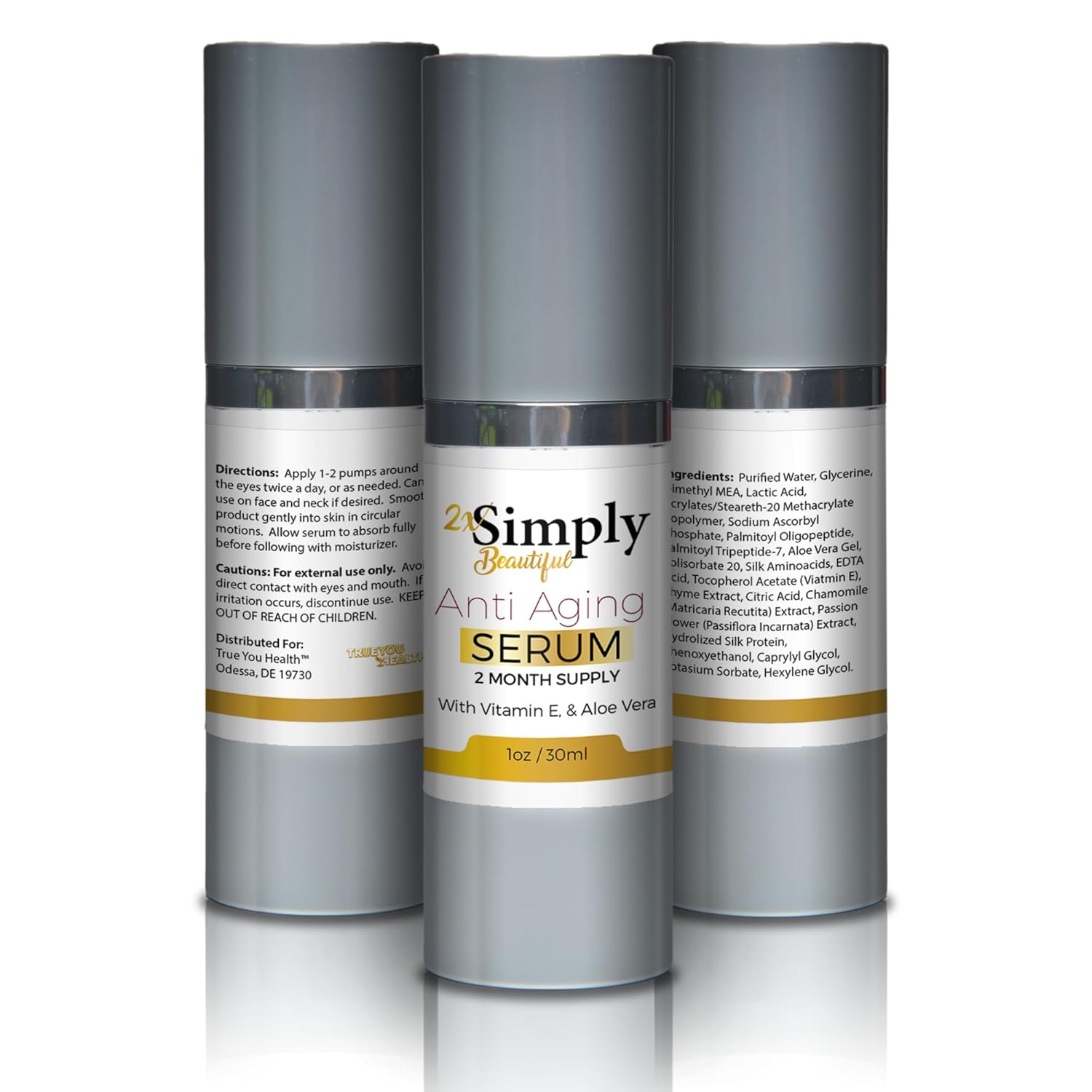 2x Simply Beautiful Anti Aging Serum 2 Month Supply - Help Smooth Skin Under & Around Eyes - Reduce Wrinkles Appearance - Anti Aging Eye Serum - Improve Puffy Bags & Dark Circles - Anti Aging Skincare