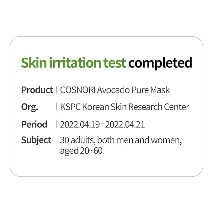COSNORI AVOCADO PURE SHEET MASK (10pc) - Clean, Hydrating and Soothing for Dry skin, Korean Face Mask- Avocado Extract, 0.81oz x 10pc