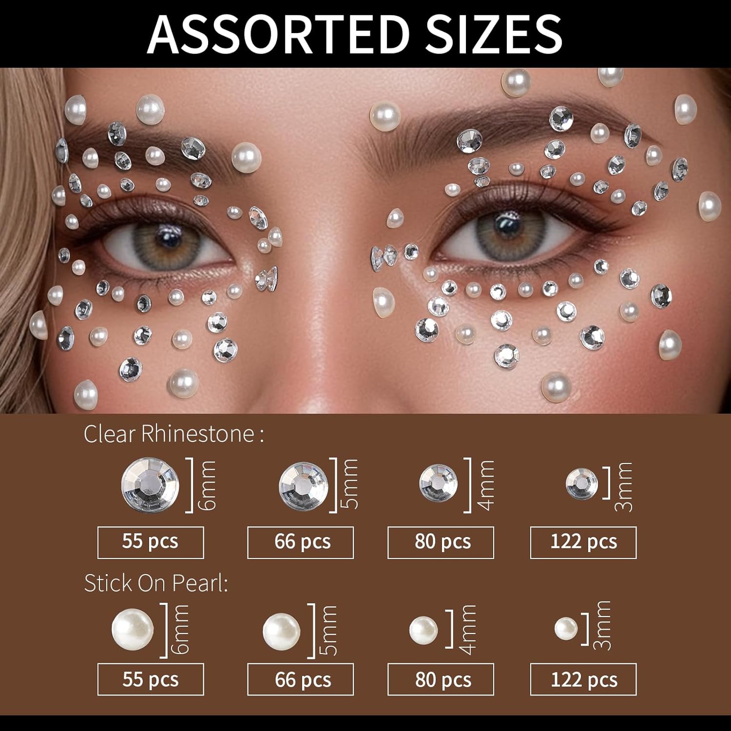 - 【FESTIVAL MAKEUP GEMS】The adhesive pearls easy to use, easy to remove and does not leave any residue on hair or skin. These makeup gems are perfect for concerts, festivals, weddings, proms, or any special occasion that calls for a touch of enchantment. Use them on your face, nails, hair, or even to embellish your favorite accessories