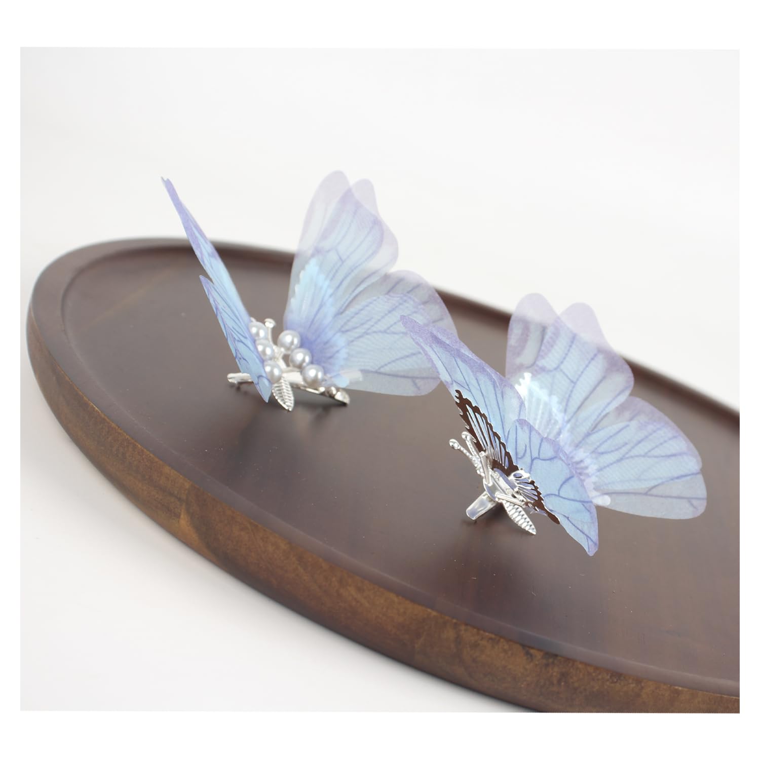 Blue Butterfly Medium Hair Clips Set - 2 Pcs with Dangling Wings - Beautiful Butterfly Hair Accessories for Girls & Women