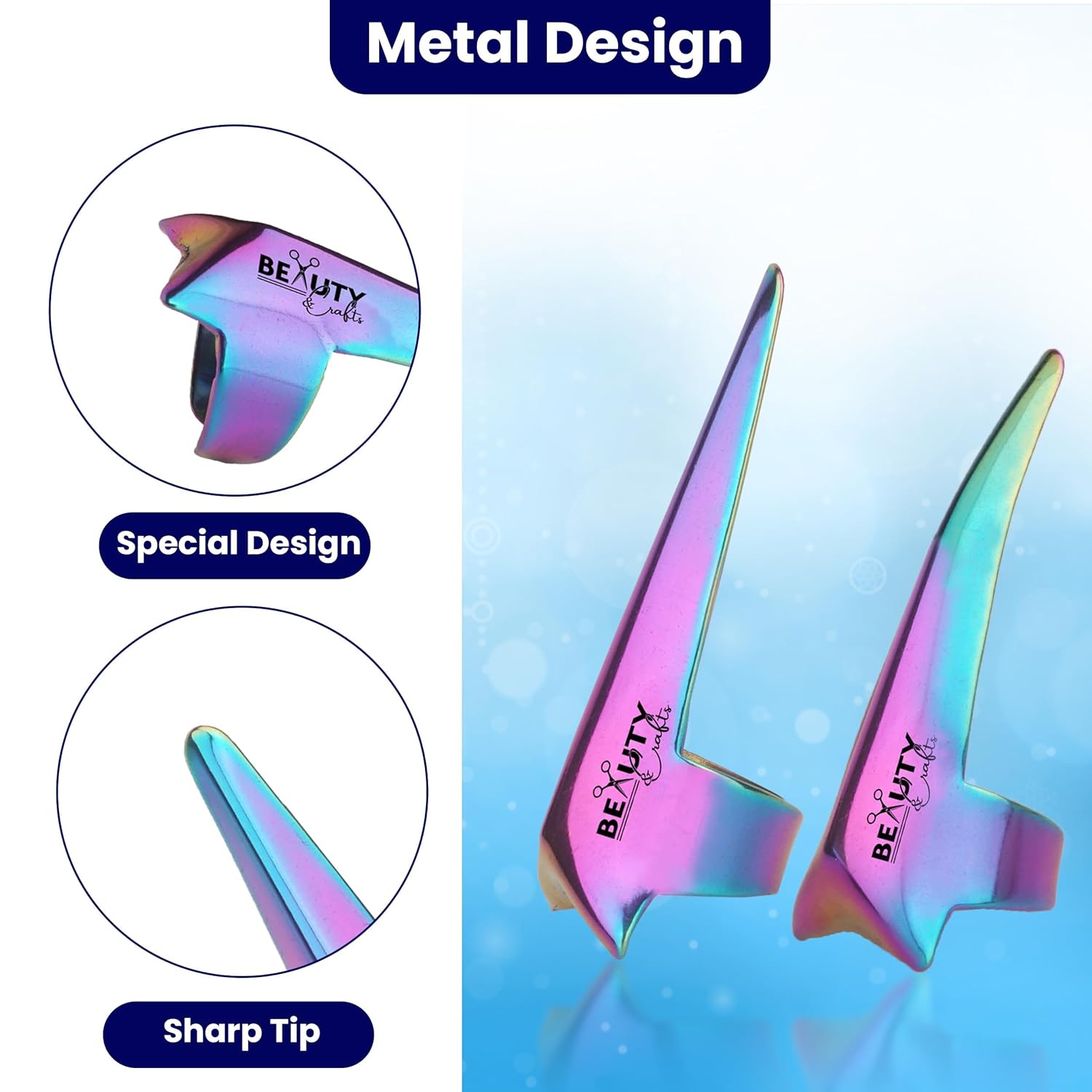 Beauty & Crafts 2PC Pro Hair Parting & Sectioning Rings-Stainless Steel Finger braiding Tool for Precise Hair Styling and Extension Installations - Inculde Straight &Curved Ring with Box (Multi)