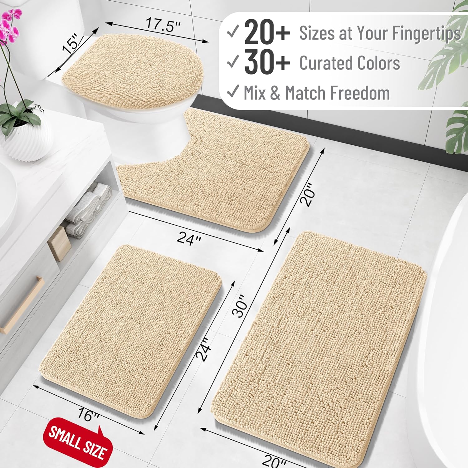 - Multi-Purpose Comfort - Elevate your bathroom experience with OLANLY's soft and luxurious Chenille Bath Rug. Versatile enough for use in the bath, in front of the sink, or anywhere in your home where you desire toe-pampering comfort. Available in a variety of colors and sizes to complement your bathroom design. A perfect addition to your bathroom, vanities, holiday homes, master bathrooms, children's bathrooms, and guest suites.