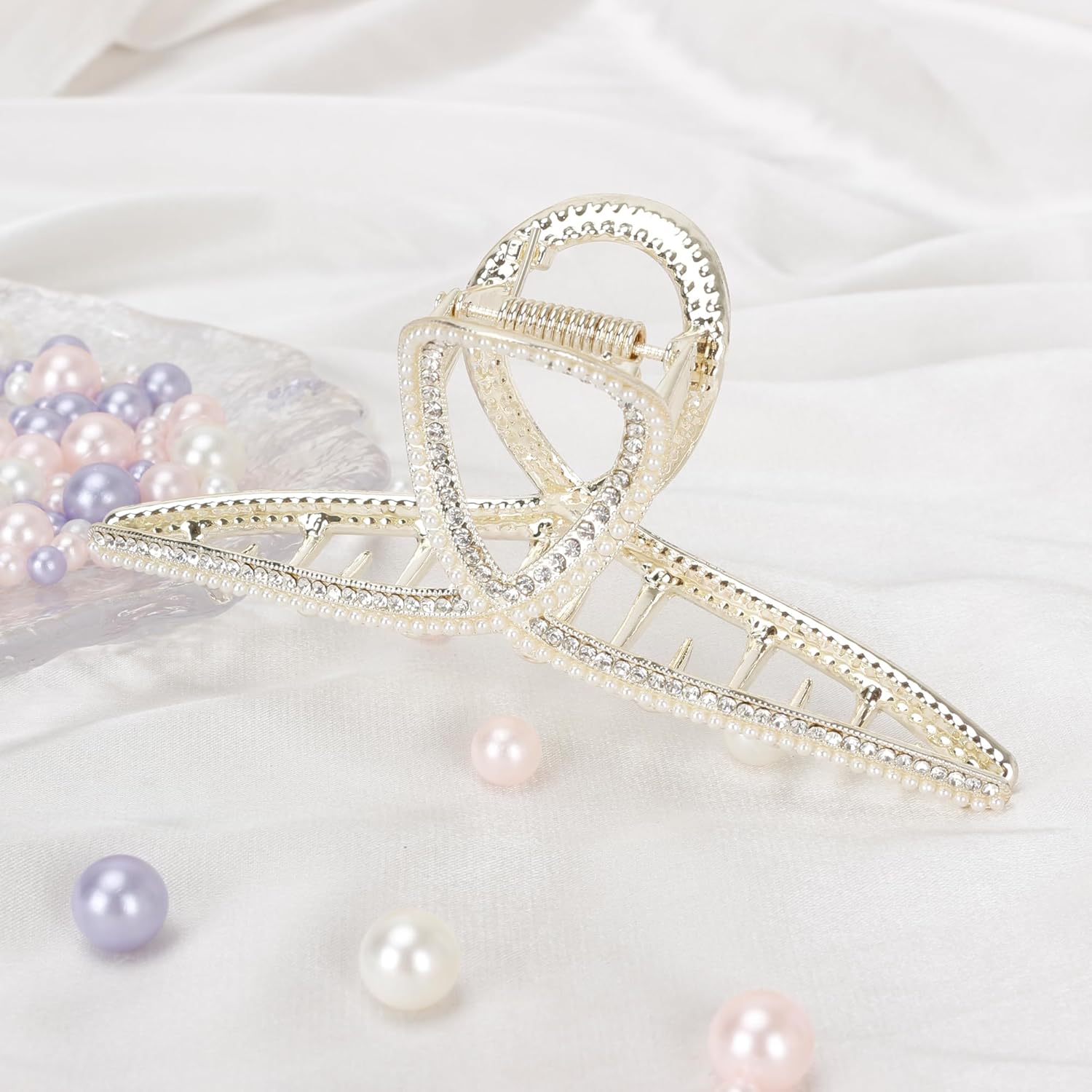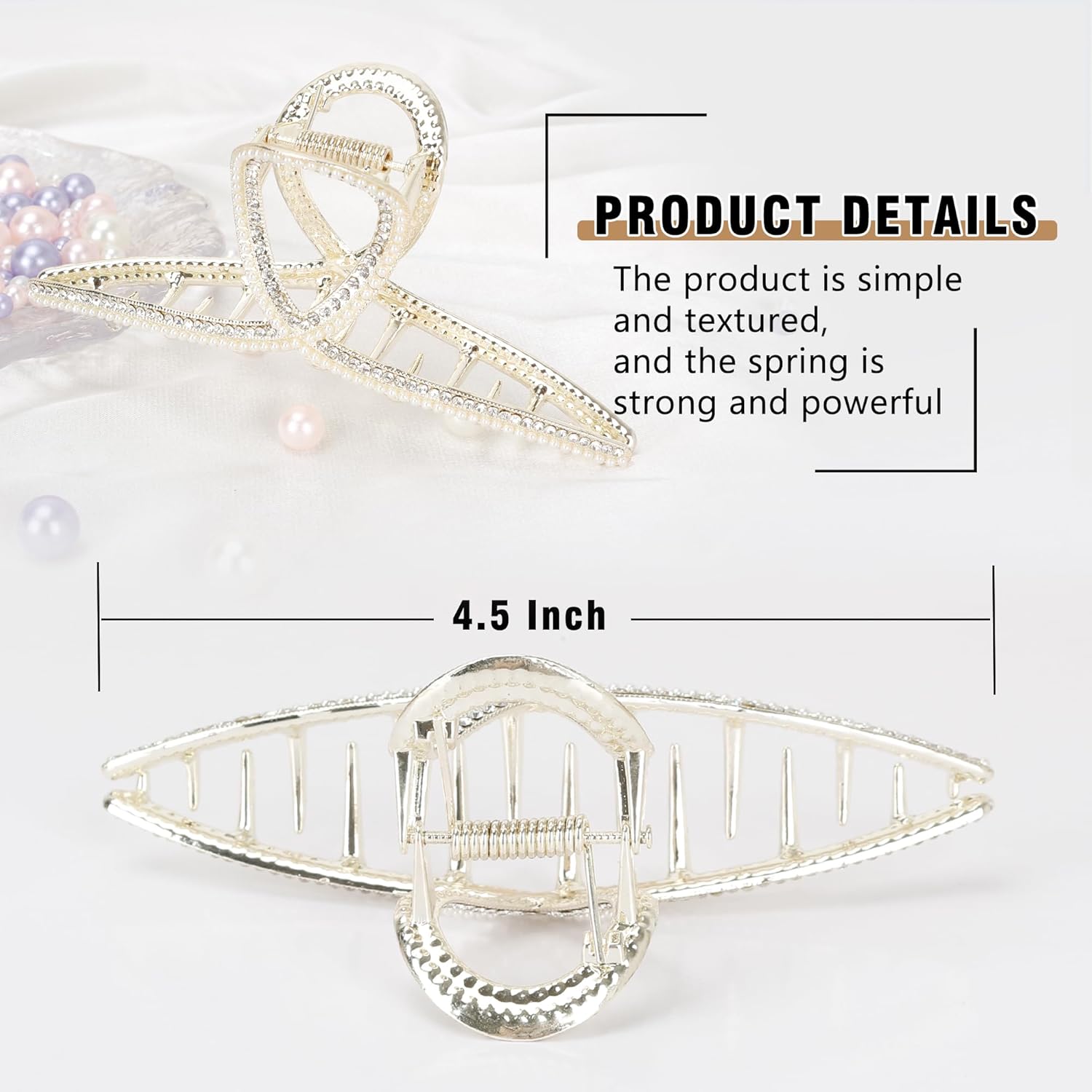 - ★Material: The metal hair clip claws is made of high quality pearls and rhinestones materials, the strong spring makes the hair clip easy to open and close, which looks more textured.