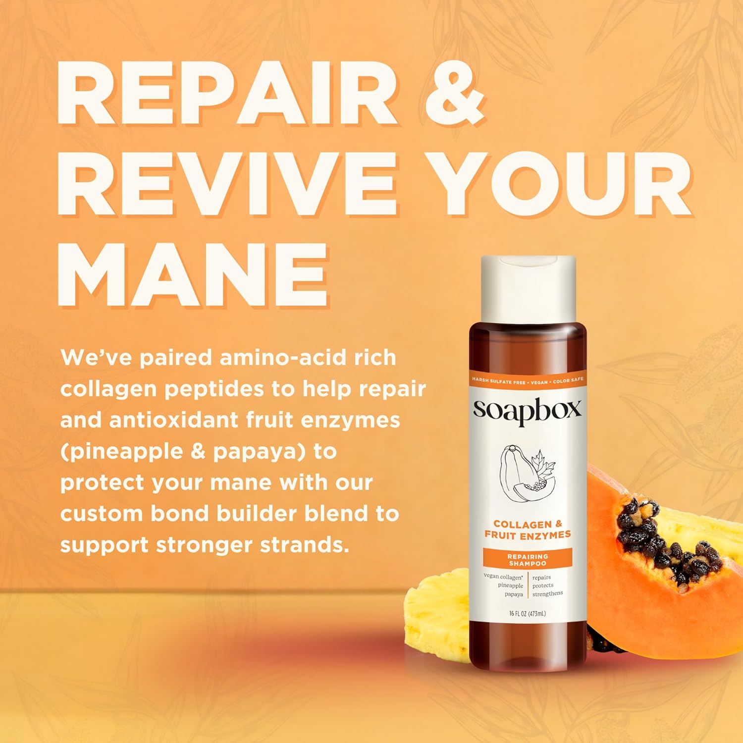 Soapbox Collagen Shampoo & Conditioner, For Dry, Fine or Thin Hair, Strengthening with Collagen & Peptides for Fuller Looking Hair, 16oz Each (Pack of 2)