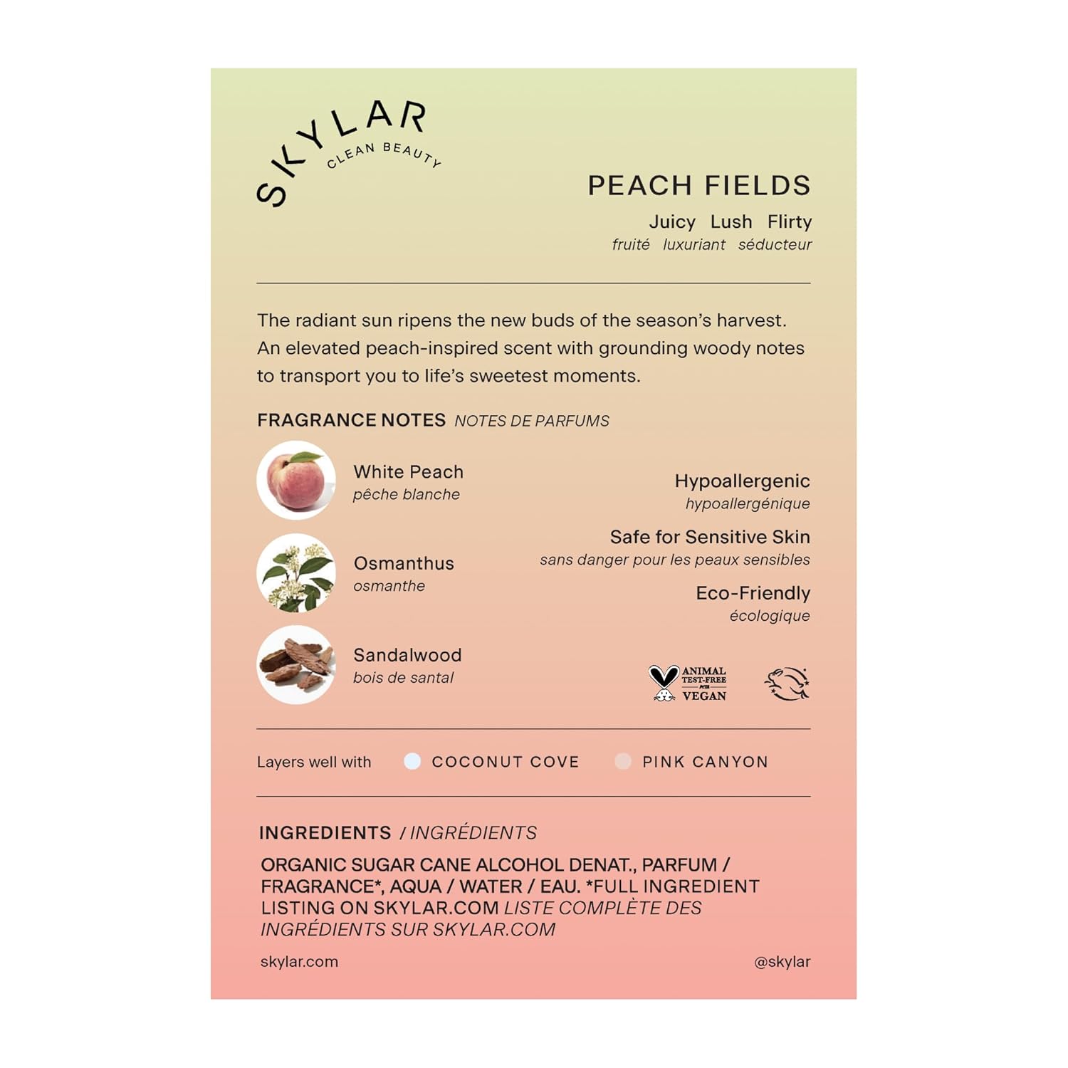Skylar Peach Fields Eau de Parfum - Hypoallergenic & Clean Perfume for Women & Men, Vegan & Safe for Sensitive Skin - Sweet Perfume with Notes of Mandarin, Grapefruit, White Peach - 50mL /1.7 Fl oz