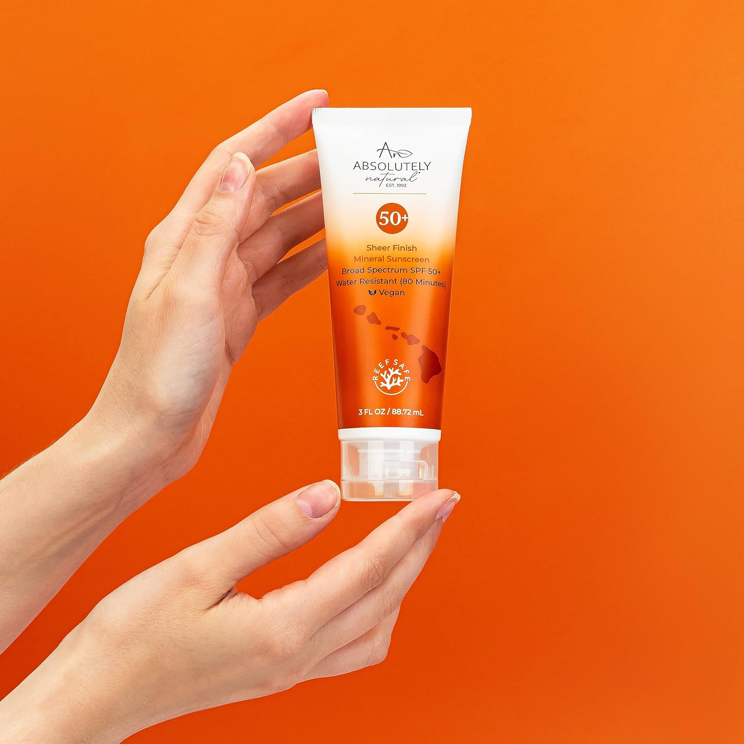 Absolutely Natural SPF 50+ Mineral Sunscreen Lotion - Anti-Aging Sunblock for Body & Face, Made with Rose Hips, Aloe, Zinc Oxide and Other Cruelty Free and Reef Safe Ingredients - Made in USA