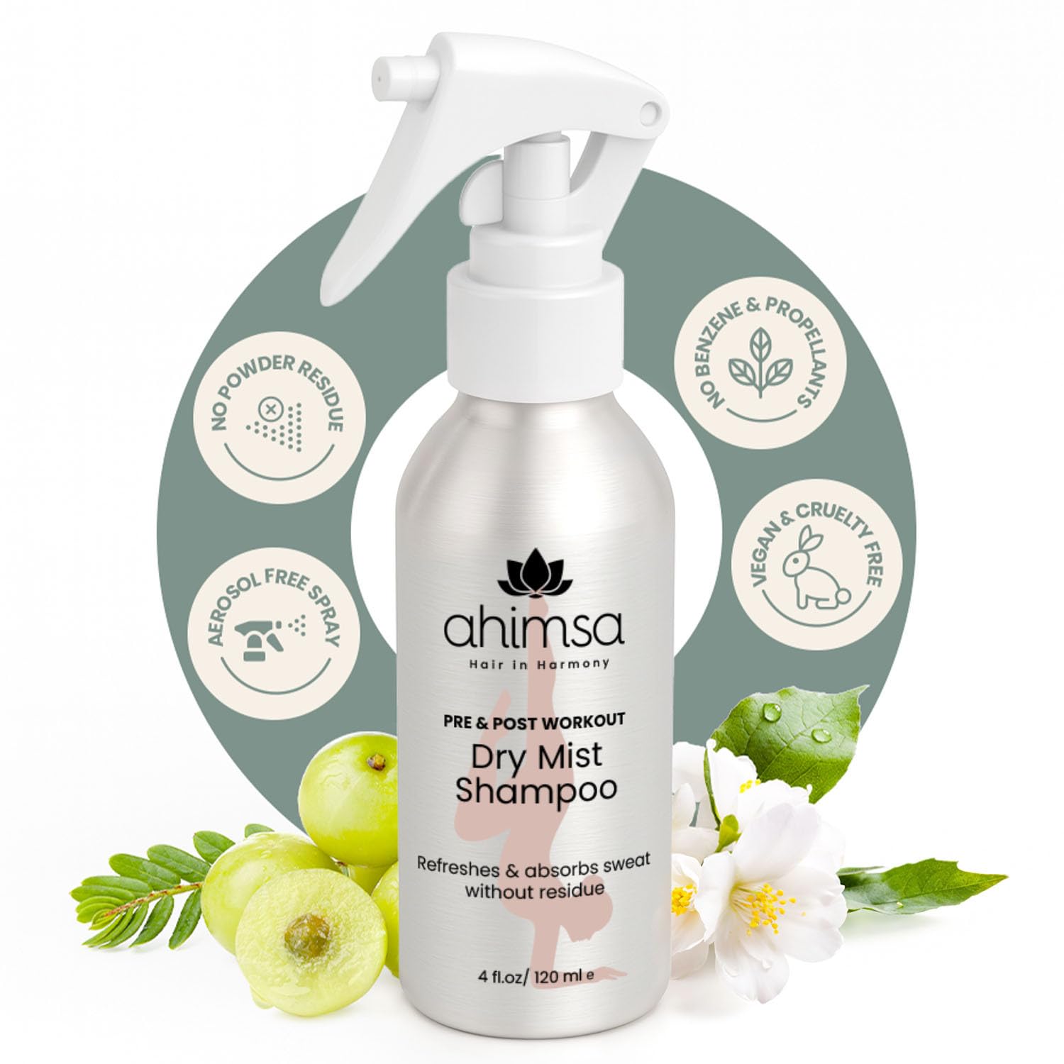 - REVITALIZE YOUR HAIR AFTER EVERY WORKOUT: Keep your hair feeling fresh and revived with Ahimsa non aerosol dry shampoo for women. Our dry shampoo mist is ideal for absorbing sweat after a workout, helping you stay refreshed without the need for water. Its lightweight, alcohol-free formula makes it one of the best dry shampoo for oily hair and a great travel companion. Enjoy effortless freshness and volume with our sweat dry shampoo dark hair, designed for women who love convenience.