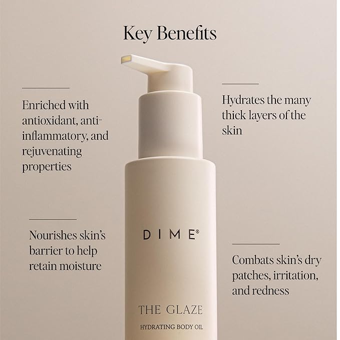 Dime Beauty Glaze Body Oil, Hydrating, Non-Greasy Massage Oil, Argan and Jojoba Oil for Skin, Bath Oil for All Over Body Glow, 4 oz / 120 ml