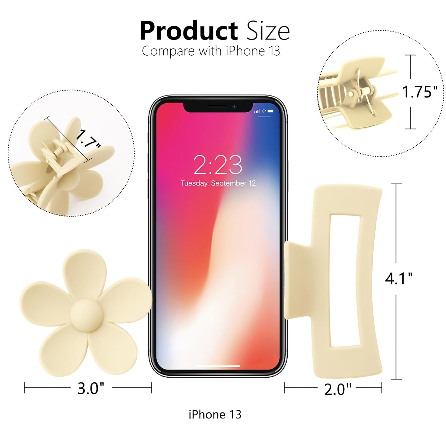 - PEFECT SIZE: 3'' flower claw clips+4.33"Rectangle Hair Claw Clips . These clips are just the right size - hold all of your thick hair, but also would be tight enough for thinner hair.The have inner teeth for a more secure hold. These clips are the perfect size! Sturdy and thick, they held my hair in place beautifully .Just stretch the teeth around your hair and it kept it in place .