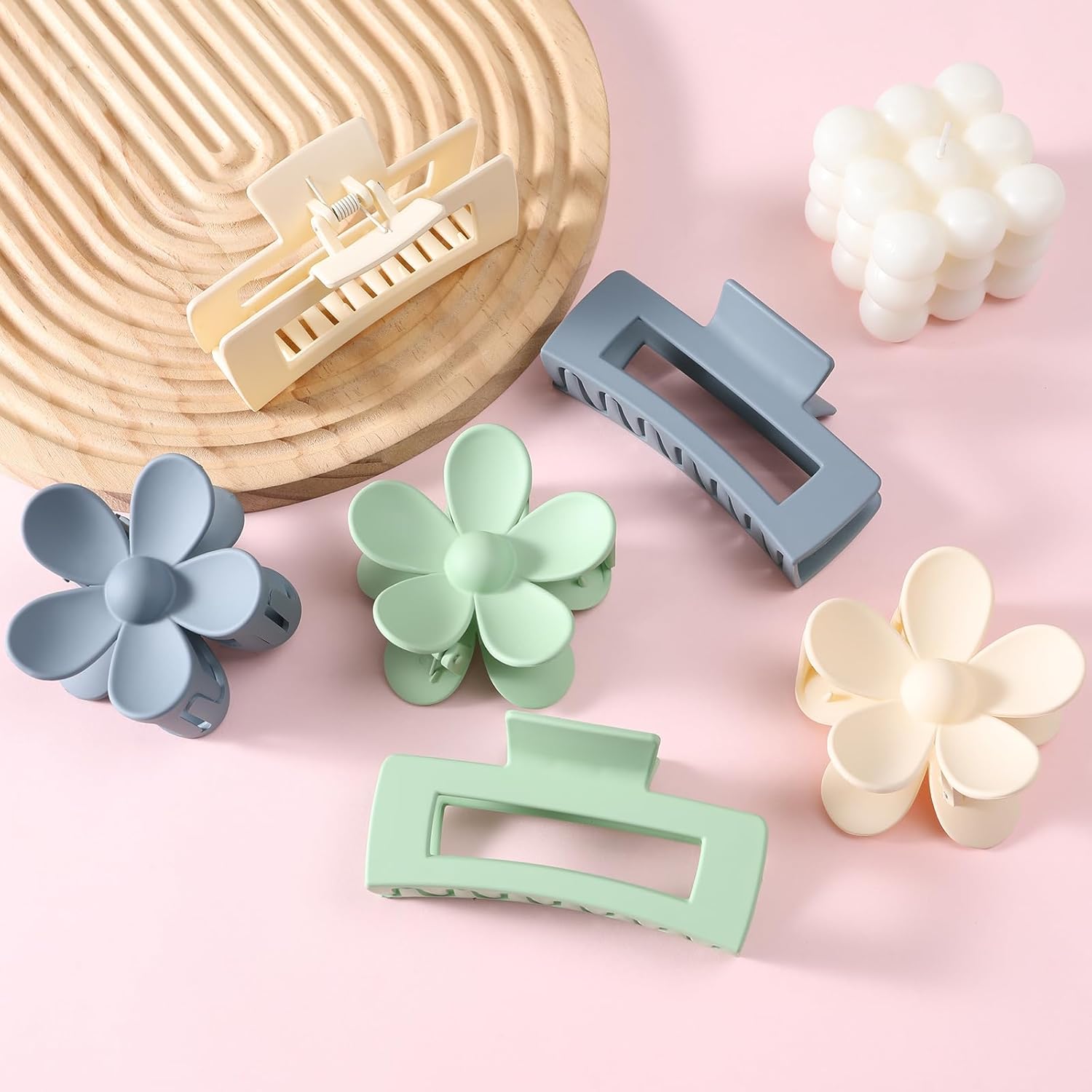 6 Pack Large Claw Clips for Women, Square & Flower Hair Clips for Thick Hair, Matte green & blue Colors