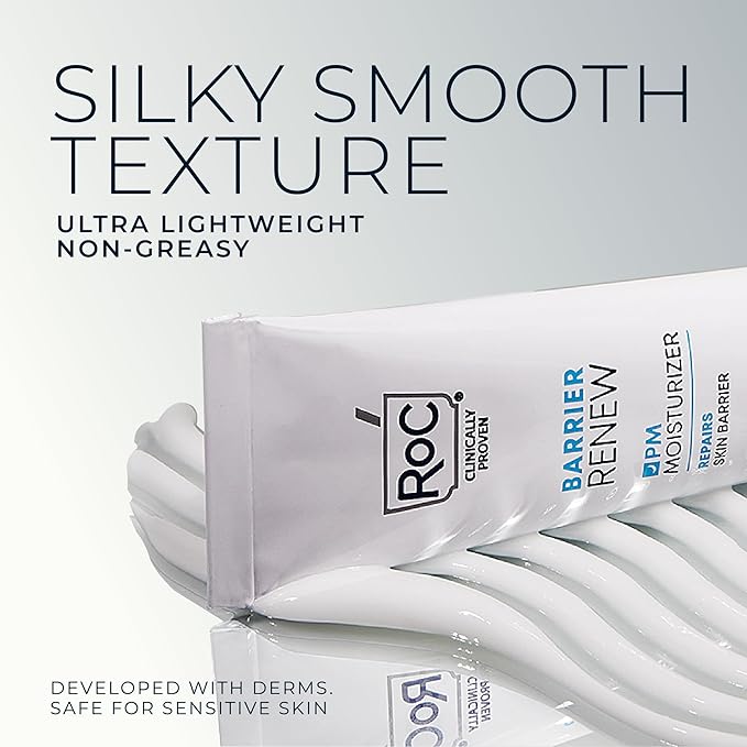 RoC Barrier Renew Night Moisturizer with Ceramides & Antioxidant Green Tea and Lipo Peptides to Renew Skin Barrier, (2.5 oz) with Retinol Eye Cream Packette