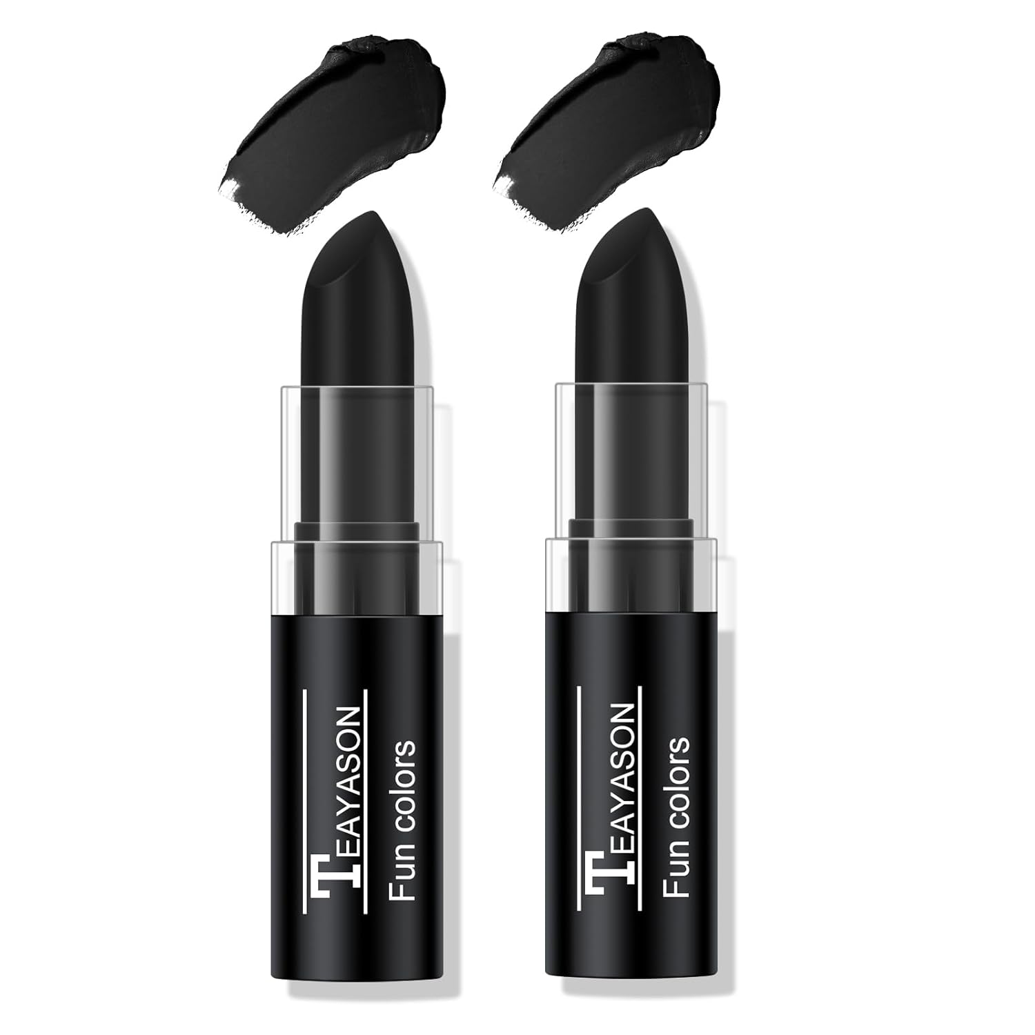 2Pcs Black Face Body Paint Stick Eye Black,Balck Matte Lipstick Makeup Paint Eyeblack for Baseball/Football/Halloween/Costume Accessories Vampire Makeup Cream Face Body Paint Easy to Blend