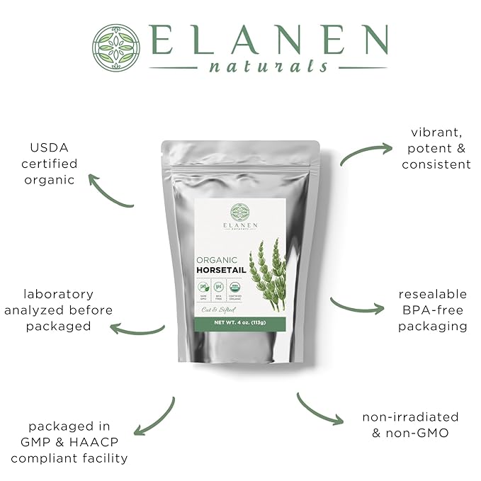 - USDA Certified Organic: Our non-irradiated cut & sifted horsetail grass herb (sometimes called horse tail, cola de caballo, shave grass, or shavegrass) is non-GMO & organic sourced, and our resealable packaging is BPA-free.