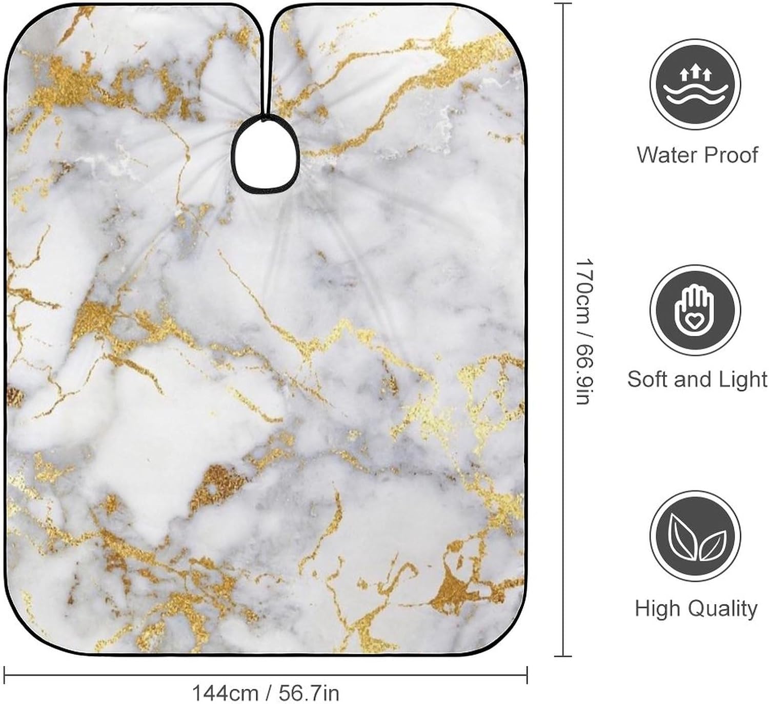 Supdreamc Hair Cut Cape Haircut Cloth Apron Cape for Barber Salon, Waterproof Professional Barber Cape Hair Dress Apron Cloak (Gold Marble Pattern)