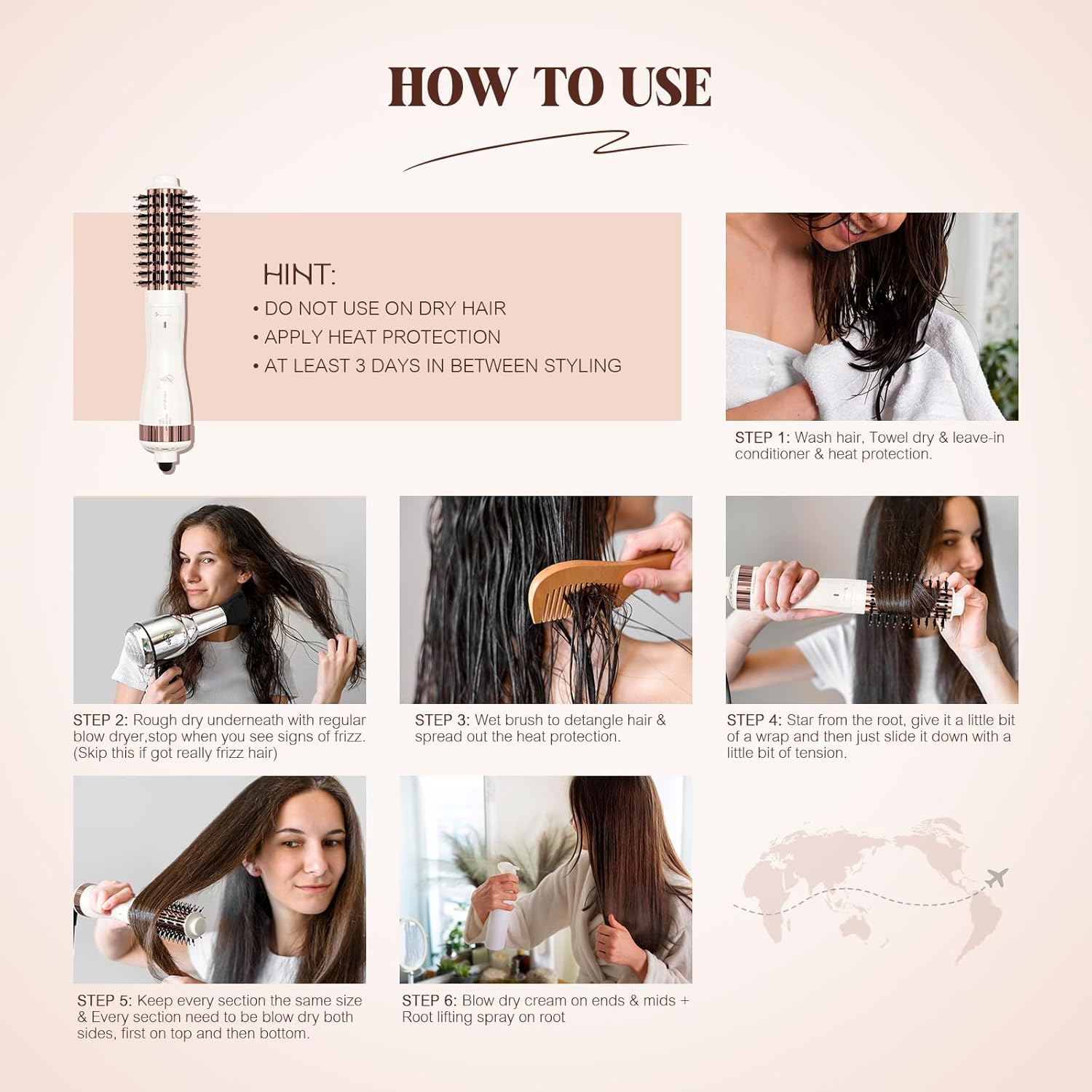 - โ ใ๐๐๐ง๐๐จ๐ญ ๐๐๐ฉ๐ฅ๐๐๐ ๐๐๐ข๐ซ ๐๐ซ๐ฒ๐๐ซใAlways use brush dryer on damp hair. As wet hair is more elastic and very fragile to begin with. Putting much heat on super wet hair is really damaging and wasting time.