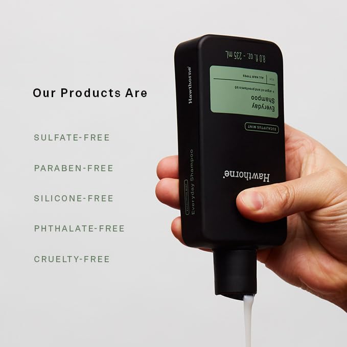 Hawthorne Men's Everyday Shampoo. For Stronger, Healthier Hair with Avocado Oil and Coconut Oil. Mint and Eucalyptus Scent. Sulfate Free, Paraben Free, Mens All Natural Shampoo. 8 fl. oz. 2-Pack.