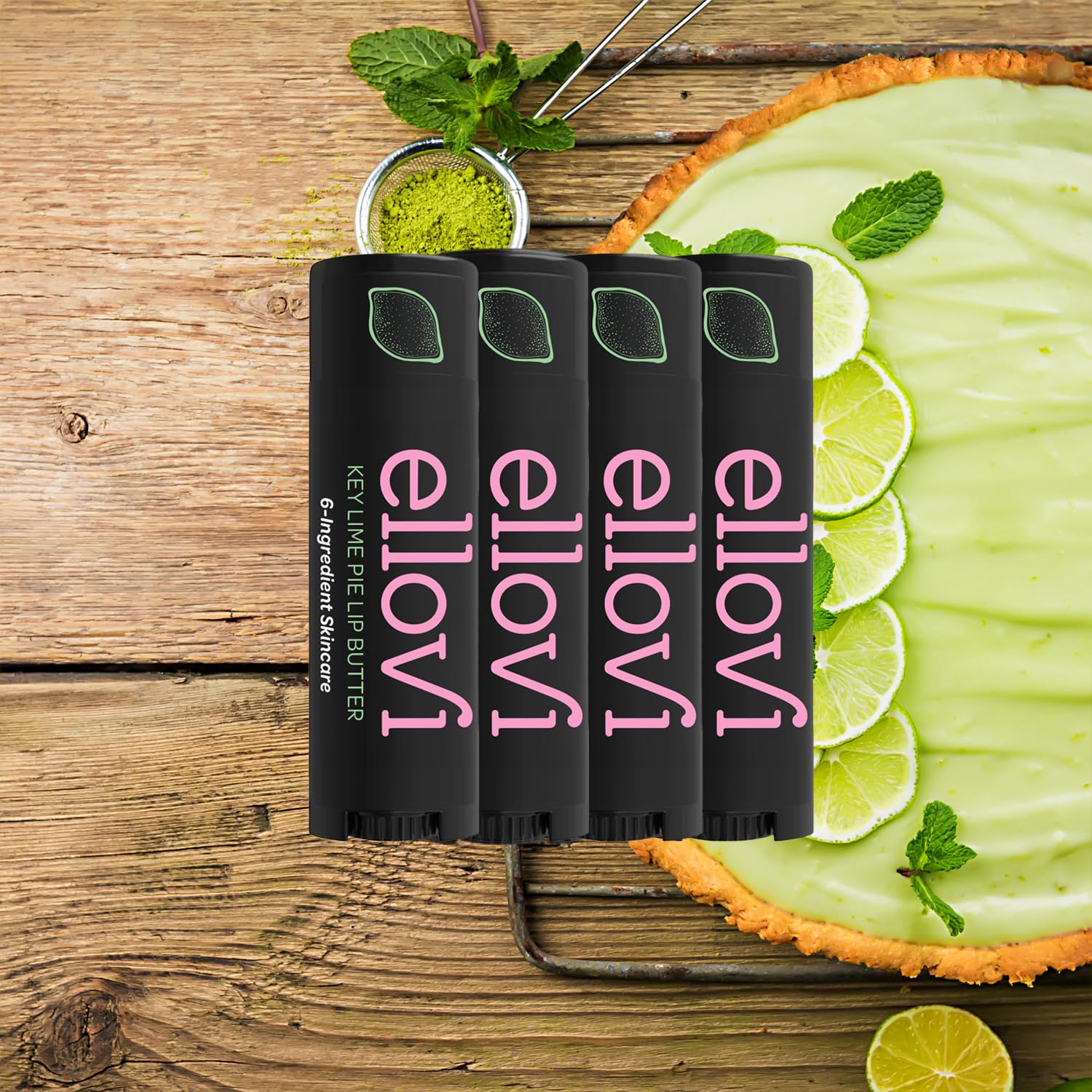 Ellovi Natural Lip Butter Lip Balm - Key Lime - Pure Enough to Eat - Made With Just 6 Vegan Ingredients - Moisturizing Lip Care for All Day Hydration (4-Pack)